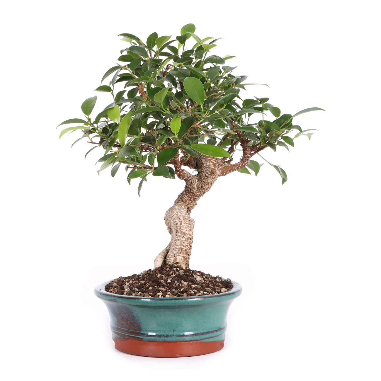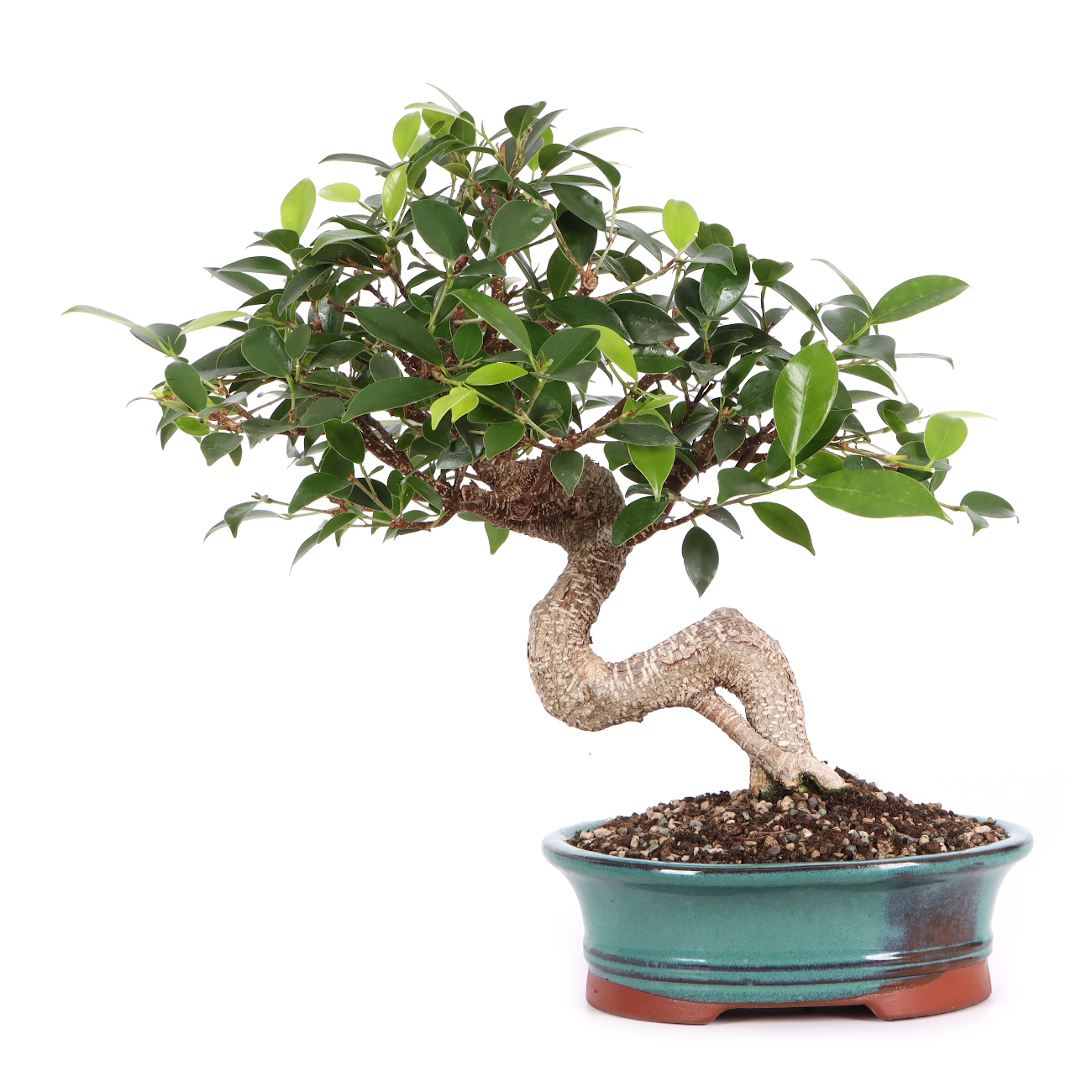 Compared to the species, the 'Tiger Bark' variety has a striking, tiger-like bark pattern. These white cork or lenticels as well as the numerous light brown aerial roots quickly give young plants a natural appearance. In addition, the leaves of this Ficus species are small and the growth is compact. All in all, this plant has very good properties as a bonsai.