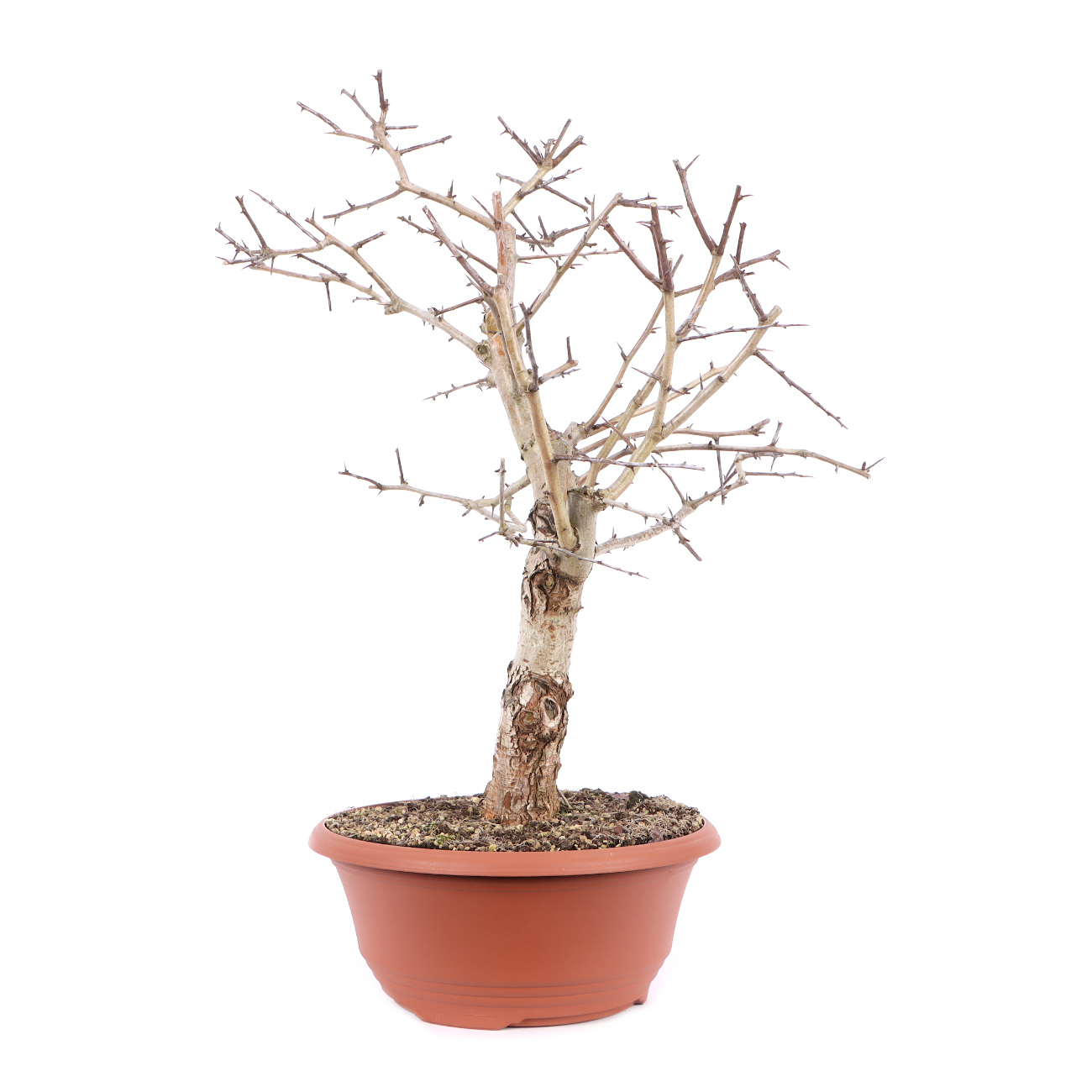 The hawthorn is very suitable for bonsai cultivation. The plant tolerates pruning very well and reacts with the formation of many new buds or shoots. Even a strong pruning and “sticking on the stick” is not a problem with a hawthorn. The deeply incised, lobed leaves are nice and small and give the plant a delicate character. A special ornament are the many densely packed flowers and the fruits, which later turn into an intense red color. Last but not least, the hawthorn has a very beautiful, smooth, silvery shiny bark when it is young, which becomes barky with age and then flakes off. The fresh shoots are only cut back after flowering. The shape cutting and the wiring can be done in summer without hesitation. However, the wire should not grow in. A sunny location outdoors promotes pronounced autumn colors and healthy growth. However, you should pay attention to sufficient watering during the summer. Drought quickly leads to leaf fall. Normal protection is sufficient in winter. Any powdery mildew that may occur can be treated with commercially available spray agents. Prophylactic treatment may be recommended.