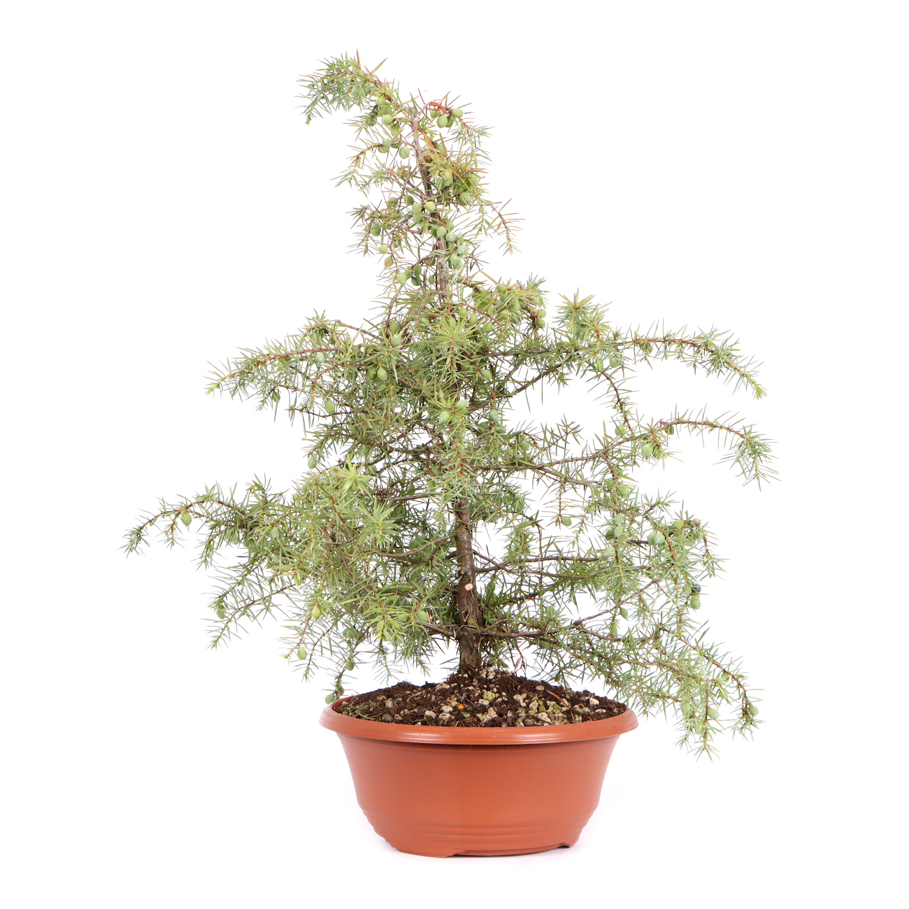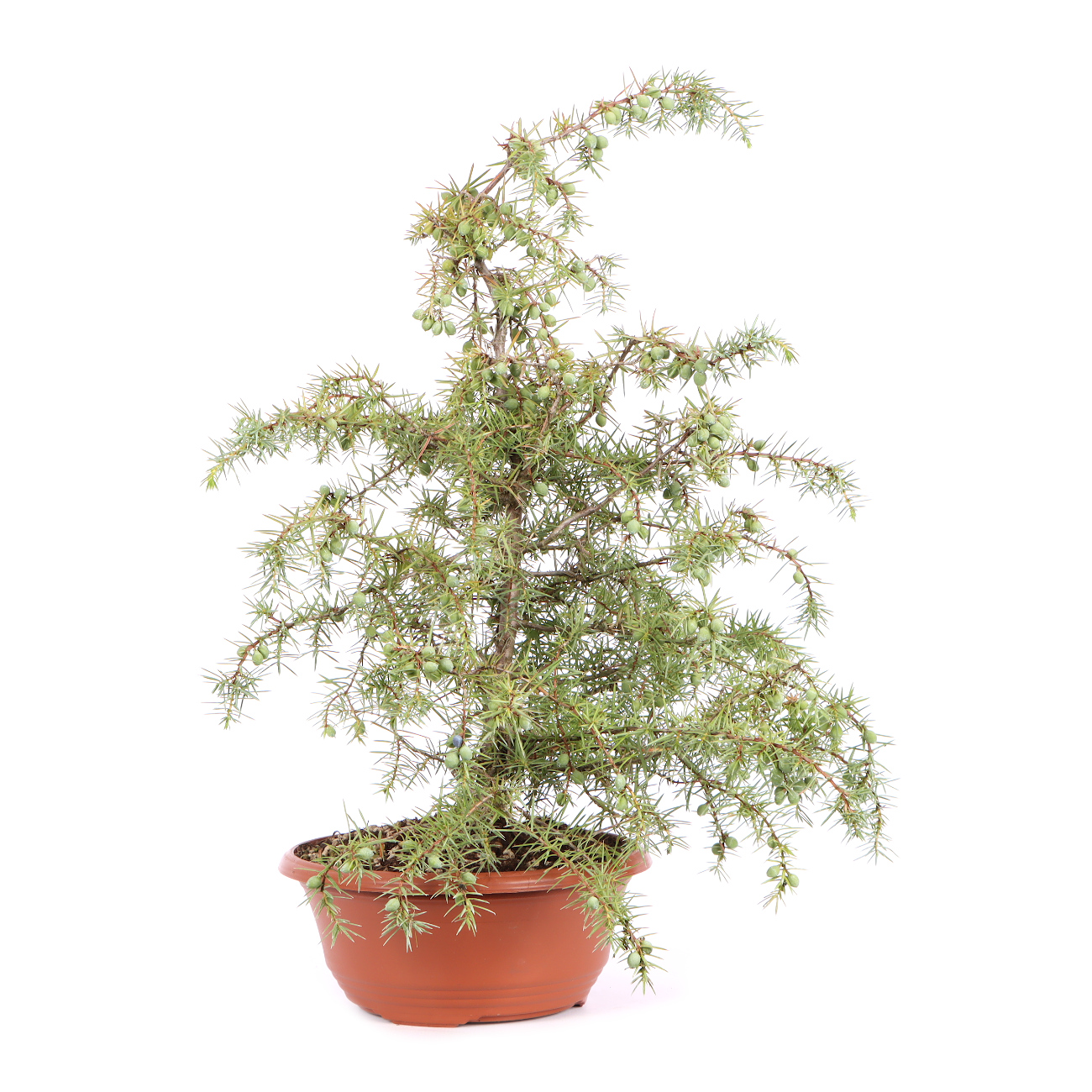 The common juniper is in no way inferior to the hedgehog juniper from Japan. The fine, evergreen foliage, the flexibility of the wood and the general robustness make the plants an ideal starting material for bonsai design. The properties mentioned offer almost unlimited possibilities to rearrange the green of the plant and to design interesting areas of dead wood. The juniper forgives massive interventions here as long as you give it time to regenerate. The only difficulty in creating is the stinging foliage. In addition, when larger branches are removed, the corresponding roots can die off. To avoid this, such branches should be removed gradually. The new shoot is regularly plucked back and the crown thinned. Older needles can also be removed year-round to encourage the formation of new buds. The juniper prefers a sunny spot in summer and should be protected in winter so that it does not dry out too much. However, sub-zero temperatures actually do not harm it.
