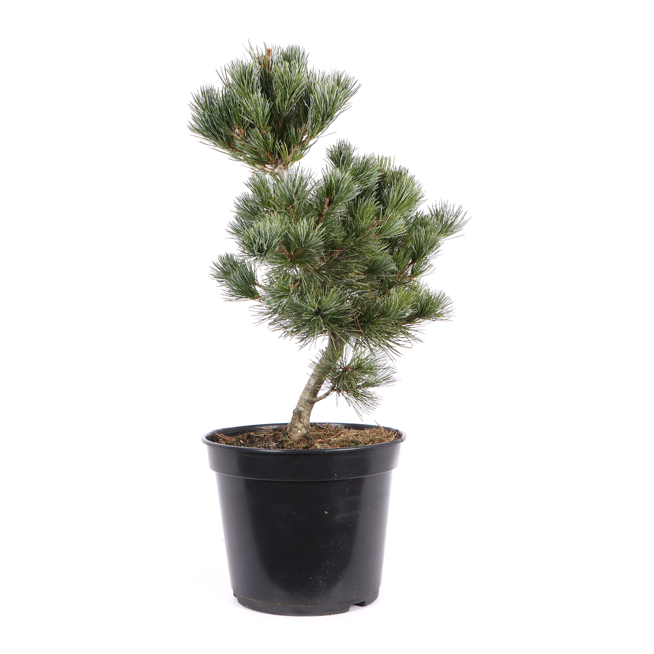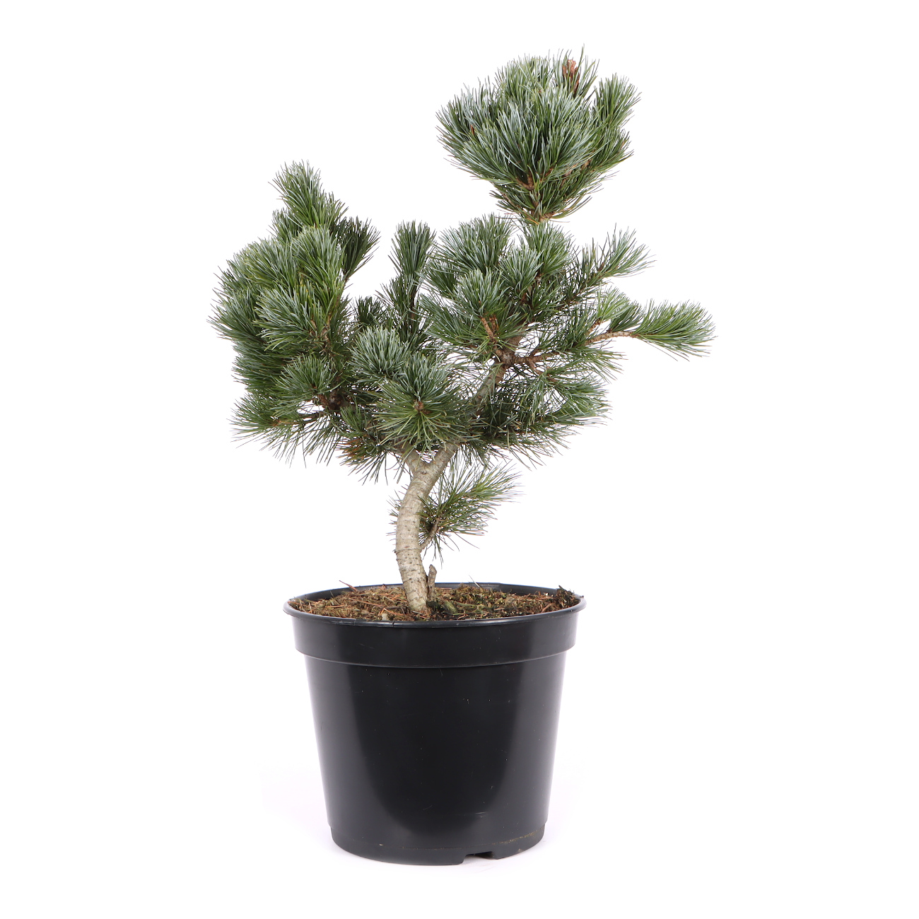 The Japanese pine has a very high status in Japan due to its symbolism (masculinity, strength, long life) and is perhaps the most popular bonsai of all. It is robust and offers many design options. As a bonsai they exude a lot of power due to their coarse character. On the other hand, the designed pine shows little change compared to deciduous trees and thus gives the viewer a lot of calm over the course of the year. A designed pine is basically very easy to care for. The new shoots (candles) are shortened or broken with the fingers in May and branches that are too dense are thinned out in late summer. In summer, a sunny location is very beneficial. Pine trees shouldn't be kept too wet. During long periods of rain, it is even advisable to put the plant under a roof. You can wire and design all year round. However, this should not coincide with the repotting at the beginning of September. In addition, the plant must ideally be frost-free after the design. A structurally stable, airy mixture is used for the substrate and attention is paid to the presence of mycorrhizal fungi. You can recognize the fungus by an even, fine and white coating that envelops the roots and, ideally, runs through the whole earth. Pine trees are very hardy. Even so, they should be protected from dry winds in winter. Bonsai seedlings from the white pine have not proven themselves in Central Europe or usually die after a certain time. We only offer refinements because the roots of the rootstock (e.g. Pinus thunbergii) are better adapted to our climate.