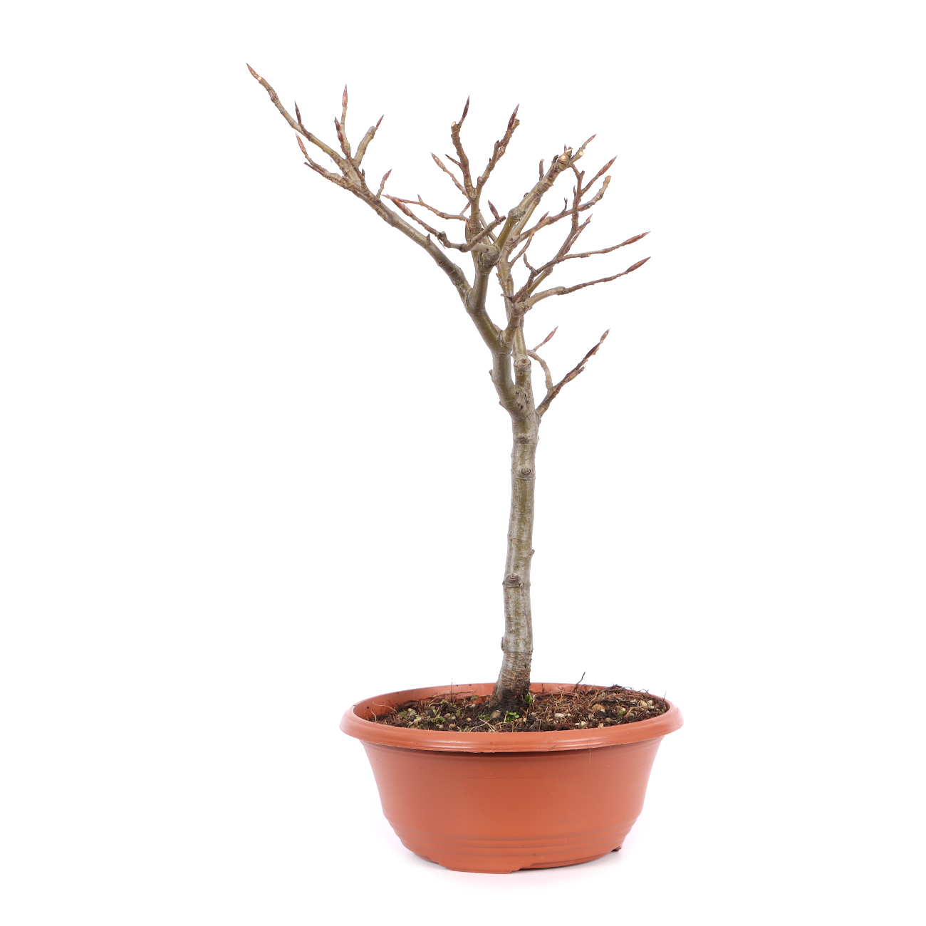 The beech forest should be familiar to every bonsai lover. It is a synonym for nature in Germany. Accordingly, the relationship to the common beech is more than understandable through the care of a bonsai. The beech tolerates pruning very well and willingly sprouts out of the old wood. The fresh shoot can be pinched on vital and ripe plants. The tip of the shoot, which is still soft, is plucked off except for two new leaves. This creates a compression and the internodes of the new shoot remain shorter. Branches can be wired well, but the wire must be removed in good time. Otherwise, unsightly scars will develop that will no longer disappear due to the smooth bark. The beech loves a sunny spot but also thrives in partial shade. The plant should be protected if it is too hot and dry. The substrate should not dry out, but waterlogging should also be avoided. Treatment with mycorrhiza and organic fertilization are very beneficial for the soil and the vitality of the plant. The beech is hardy, but endangered by late frost in spring. After the leaves have unfolded, you should also watch out for mealybugs and rinse them off with water in good time.