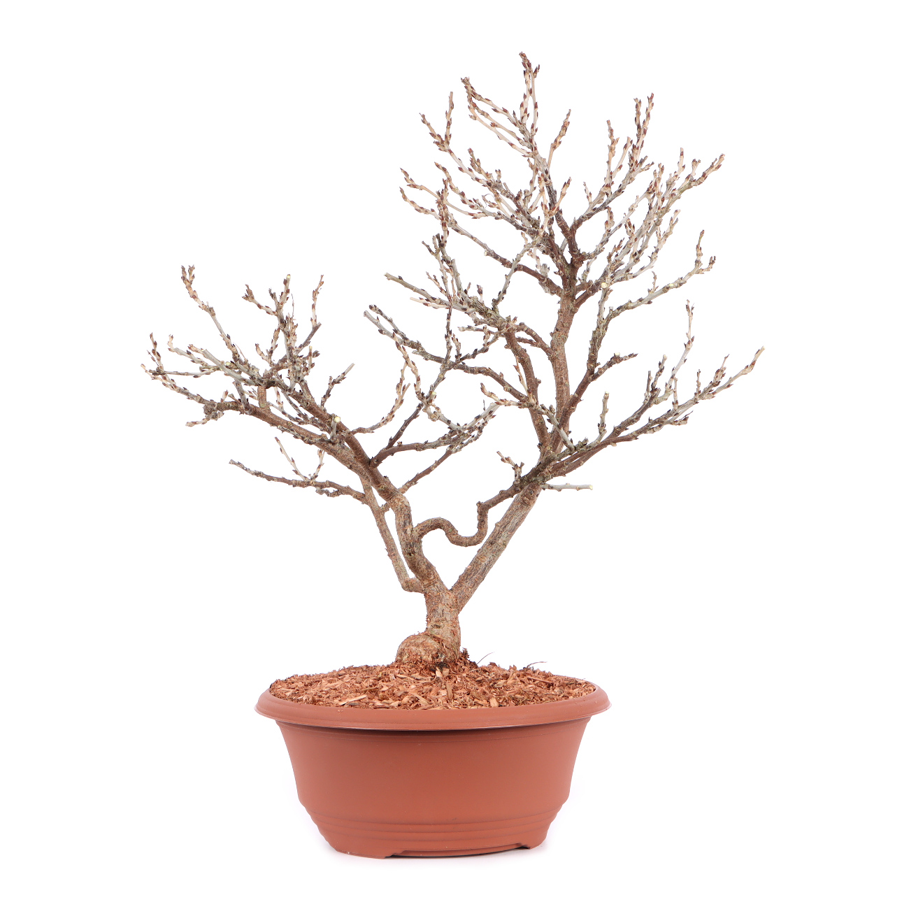 The dwarf wisteria is a unique plant for designing bonsai. In our experience, there is no wood with smaller pinnate leaves. In larger specimens, these small, filigree leaves look particularly graceful and are reminiscent of the light canopy of an ancient ash or robinia. Very beautiful dwarf bonsai can also be raised from the plant. The shoots of the dwarf wisteria are very easy to wire and bend. The plants can stand in full sun with sufficient watering. If the soil becomes too dense due to the fine roots, it must be repotted. In winter, the plants should be frost-free if possible.