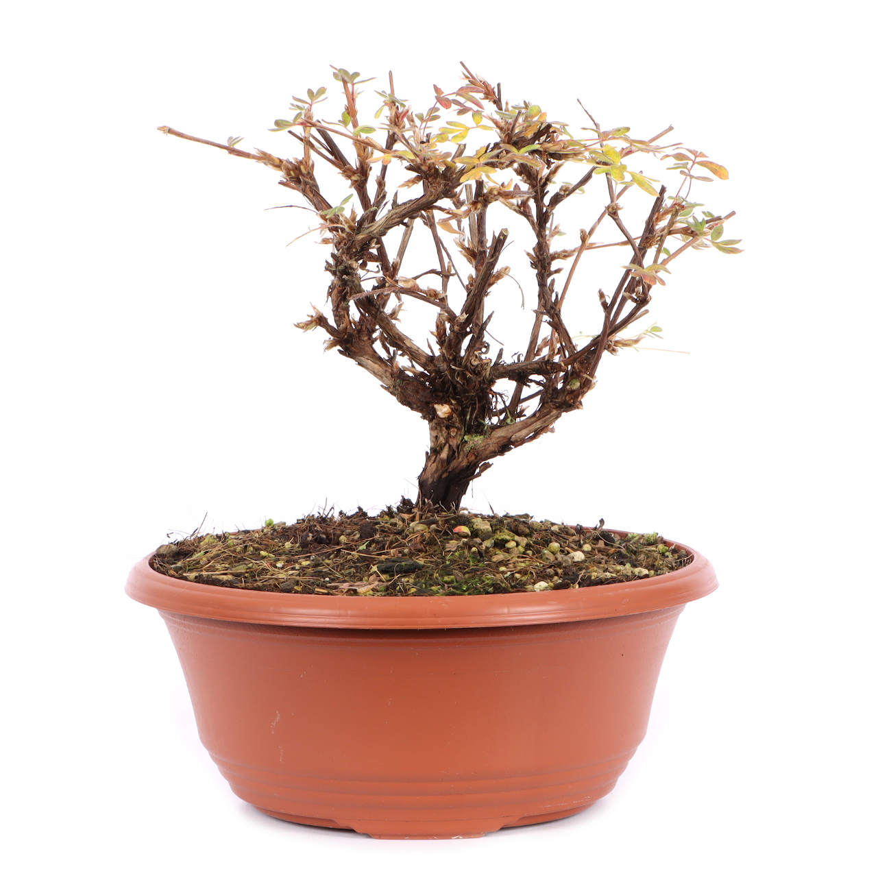 The shrubby cinquefoil has optimal properties for creating very special bonsai. The leaves are small and delicate and turn yellow-orange in autumn. The plant is very pruning and forms many, sometimes very fine branches. The bark is reddish brown and comes off in thin strips, similar to that of a juniper. Last but not least, the shrubby cinquefoil blooms tirelessly and several times a year. Overall, the plant is also very robust and forgives one or the other care mistakes. The shrubby cinquefoil should be sunny for optimal flowering. On very hot days, however, you have to pay attention to sufficient watering or place the plant somewhat protected. Root growth is strong and the plants need to be repotted regularly.