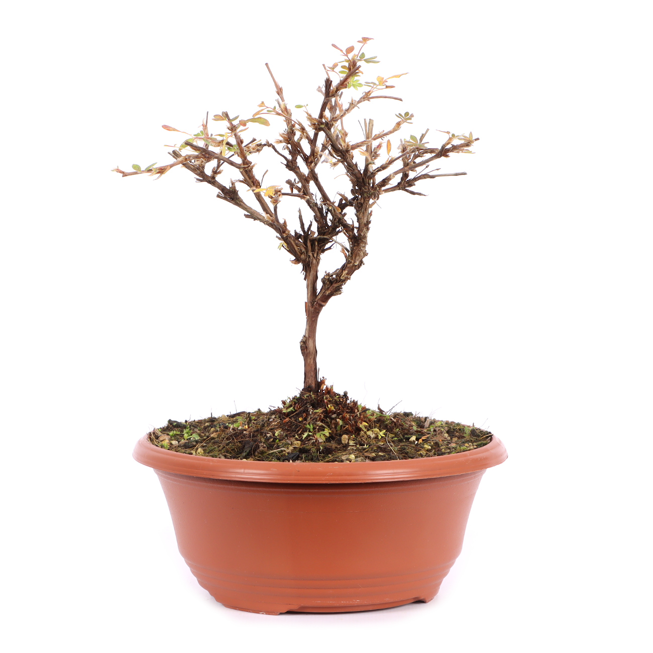 The shrubby cinquefoil has optimal properties for creating very special bonsai. The leaves are small and delicate and turn yellow-orange in autumn. The plant is very pruning and forms many, sometimes very fine branches. The bark is reddish brown and comes off in thin strips, similar to that of a juniper. Last but not least, the shrubby cinquefoil blooms tirelessly and several times a year. Overall, the plant is also very robust and forgives one or the other care mistakes. The shrubby cinquefoil should be sunny for optimal flowering. On very hot days, however, you have to pay attention to sufficient watering or place the plant somewhat protected. Root growth is strong and the plants need to be repotted regularly.