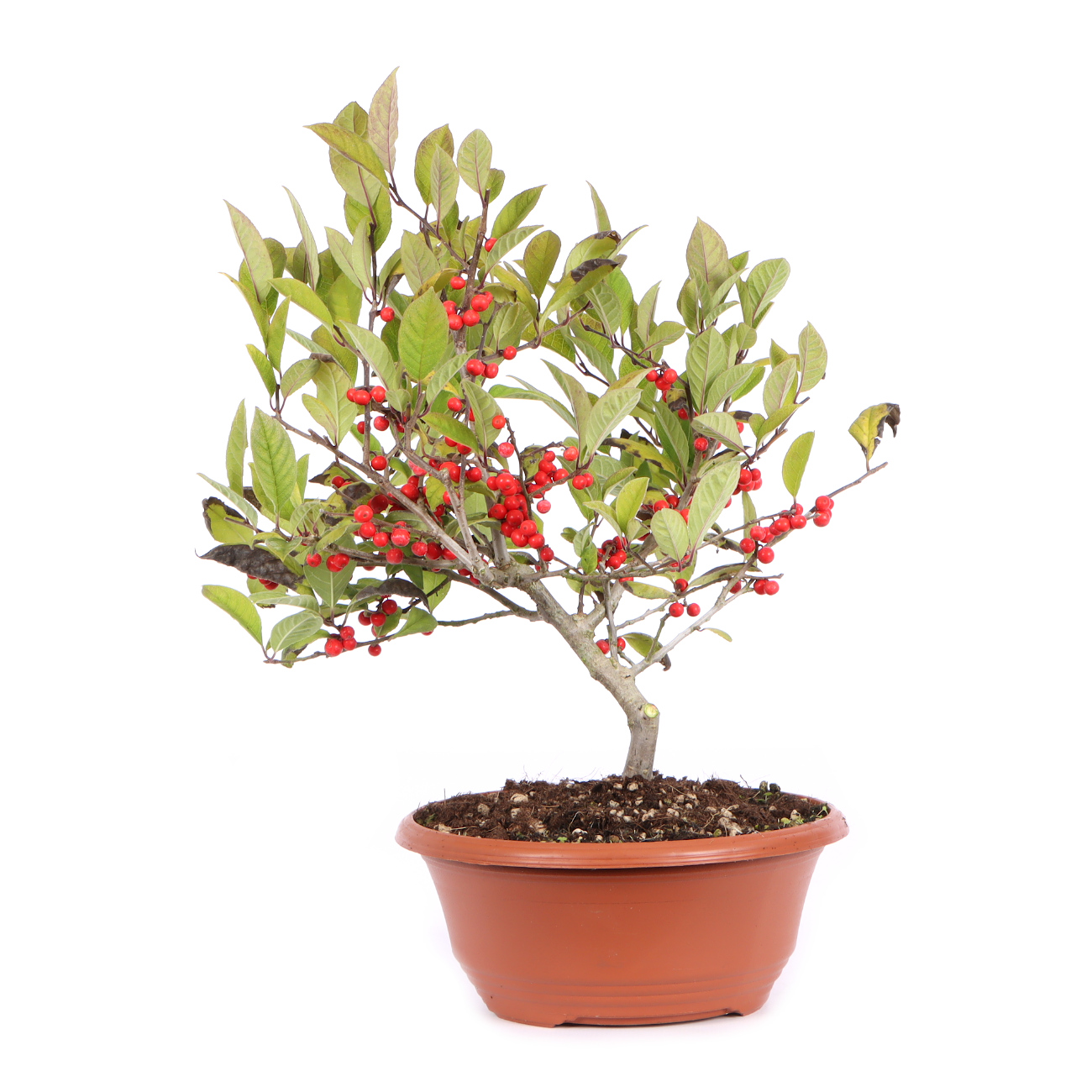 The winter berry is very popular as a bonsai because of its fruit decorations. When the leaves are shed in autumn, the bright red, small fruits on the trees come into their own. A male plant of this species or genus is required in the immediate vicinity for fruiting. However, the best fertilization is achieved by combining a female and male plant directly during the flowering period. Then you can see how hoverflies in particular take over pollination. A flower formation can sometimes be found on three-year-old plants. To do this, the fresh shoots should no longer be cut from August, as the flower buds for the next year will form on them. Winter berries are otherwise easy to cut and form fine and dense branches. Wiring and bending branches must be done very carefully. The branches are hard and brittle and wire traces would always remain visible due to the smooth bark. Even if they are not typical holly, they love a partially shaded location in summer. The fine roots do not tolerate waterlogging and must be watered carefully. In winter the plant is best protected and frost-free.