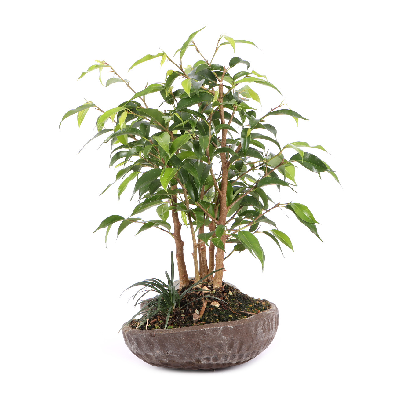 Die Sorte ‘Natasja‘ ist eine Zwergform der Art und eignet sich aufgrund der kleinen Blätter und dem dichten Wuchs sehr gut für die Bonsaigestaltung. Außerdem kann man aus Zwerg-Birkenfeigen tolle Indoor-Wälder und –Landschaften pflanzen.
