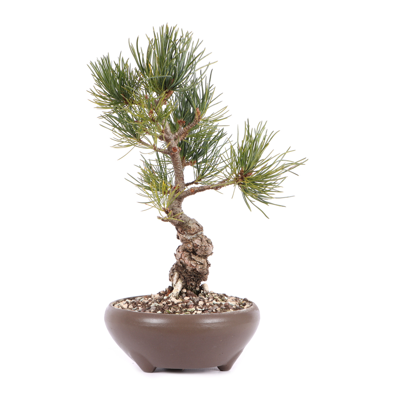 Die Mädchenkiefer hat in Japan aufgrund ihrer Symbolik (Männlichkeit, Stärke, langes Leben) einen sehr hohen Stellenwert und ist vielleicht der beliebteste Bonsai überhaupt. Sie ist robust und bietet viele gestalterische Möglichkeiten. Als Bonsai strahlen sie durch ihren derben Charakter viel Kraft aus. Andererseits zeigt die gestaltete Kiefer im Vergleich zu Laubbäumen wenig Veränderung und vermittelt dem Betrachter dadurch im Jahresverlauf viel Ruhe. Eine gestaltete Kiefer ist im Grunde sehr pflegeleicht. Die neuen Triebe (Kerzen) werden im Mai eingekürzt bzw. mit den Fingern gebrochen und zu dichte Astpartien werden im Spätsommer ausgelichtet. Im Sommer ist ein sonniger Standort sehr von Vorteil. Kiefern sollten nicht zu nass gehalten werden. Bei langen Regenperioden empfiehlt es sich die Pflanze sogar unter ein Dach zu stellen. Drahten und Gestalten kann man das ganze Jahr über. Dies sollte aber nicht mit dem Umtopfen Anfang September zusammen fallen. Außerdem muss die Pflanze nach der Gestaltung am besten frostfrei stehen. Bei dem Substrat verwendet man eine strukturstabile, luftige Mischung und achtet auf das Vorhandensein von Mykorrhiza-Pilzen. Man erkennt den Pilz an einem gleichmäßigen, feinen und weißen Belag, der die Wurzeln umhüllt und im Optimalfall die ganze Erde durchzieht. Kiefern sind sehr frosthart. Trotzdem sollten sie im Winter vor trockenen Winden geschützt werden. Bonsai-Sämlinge von der Mädchenkiefer haben sich in Mitteleuropa nicht bewährt bzw. gehen nach gewisser Zeit meistens ein. Wir bieten ausschließlich Veredelungen an, da die Wurzeln der Unterlage (z.B. Pinus thunbergii) besser an unser Klima angepasst sind.