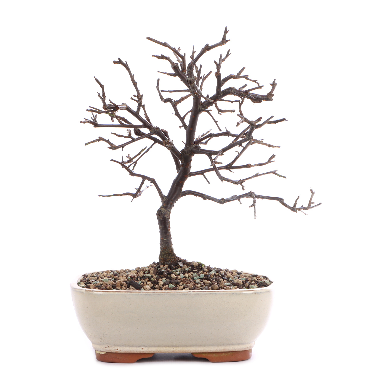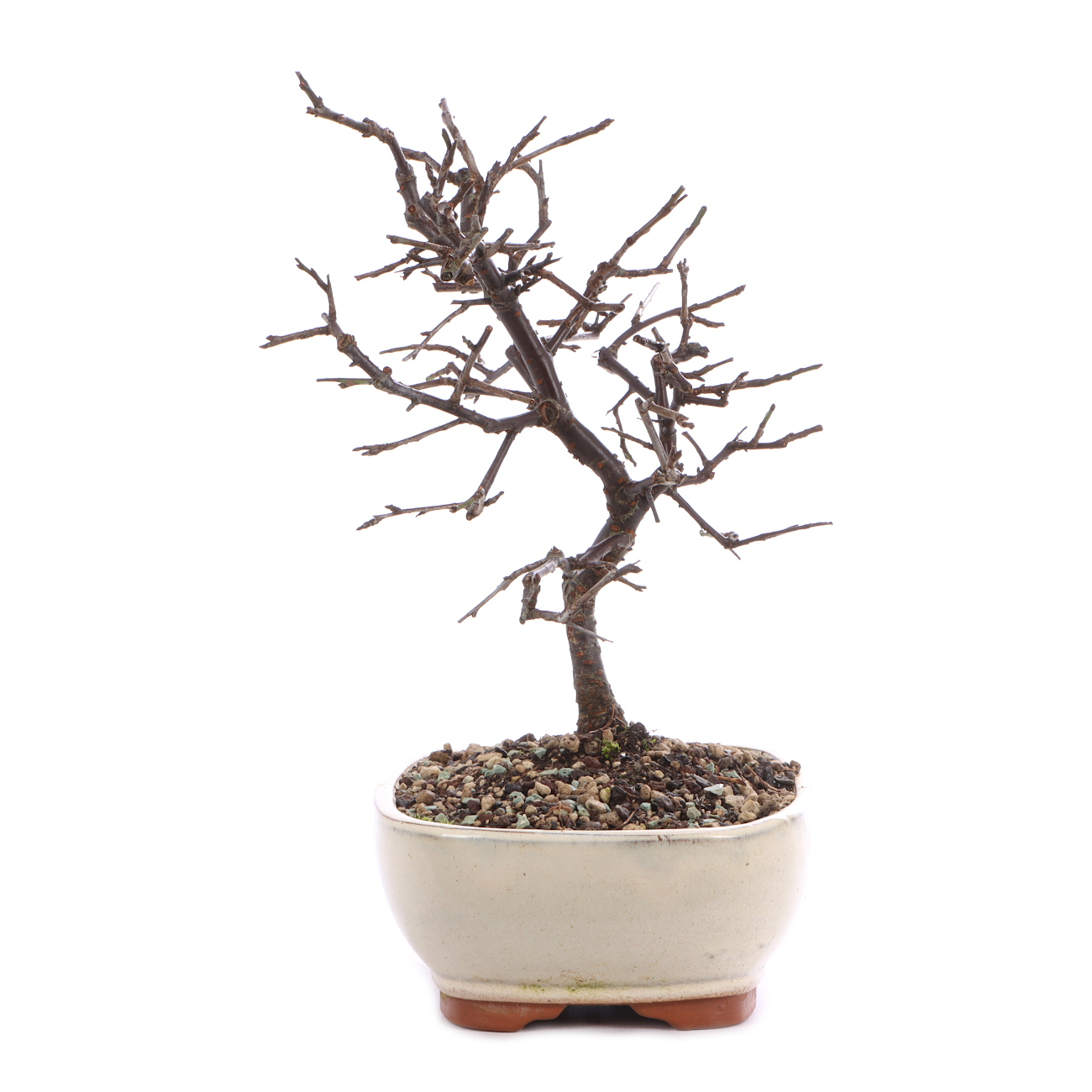 Schlehen entwickeln sich zu unglaublich schönen Bonsais. Alte Exemplare sind reich verzweigt und die tiefschwarze Rinde ist ein toller Kontrast zu den weißen Blüten im Frühjahr. Auch die blauen Früchte in der grünen und später kahlen Krone sind sehr zierend. Darüber hinaus ist die Art sehr robust und anpassungsfähig. Ein heller Standort, eine gute Wasser- und Nährstoffversorgung sowie das regelmäßige Umtopfen sorgen für eine gesunde Entwicklung. Schlehen sind frosthart, aber wie alle Bonsai sind die frischen Wurzeln im Frühjahr spätfrostempfindlich.