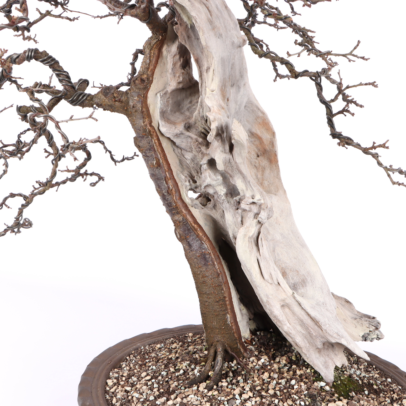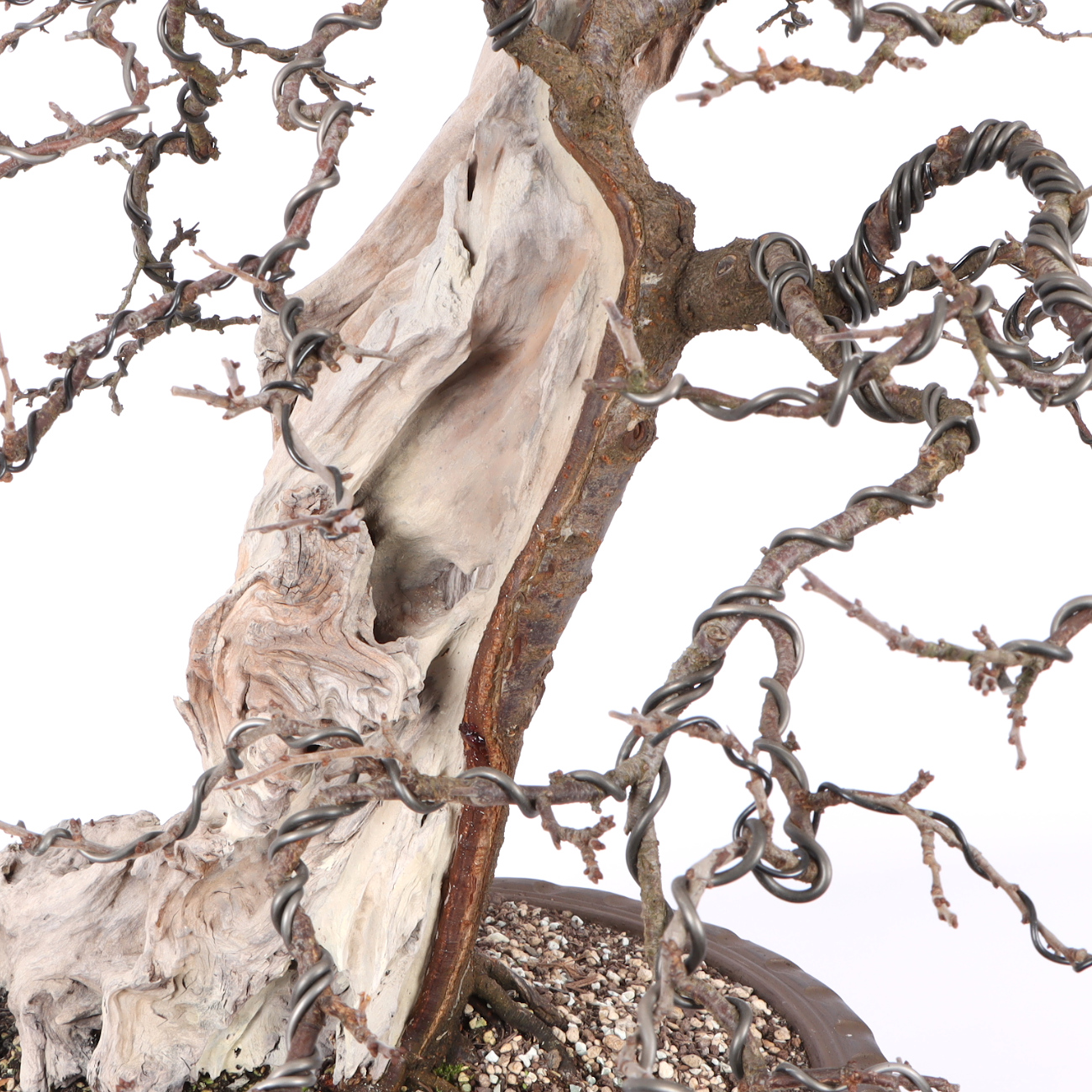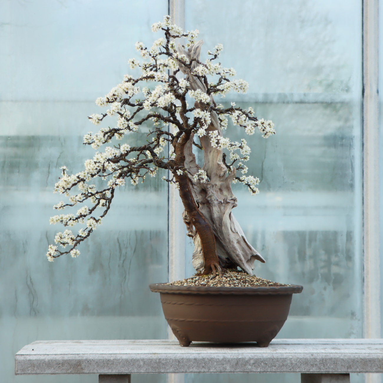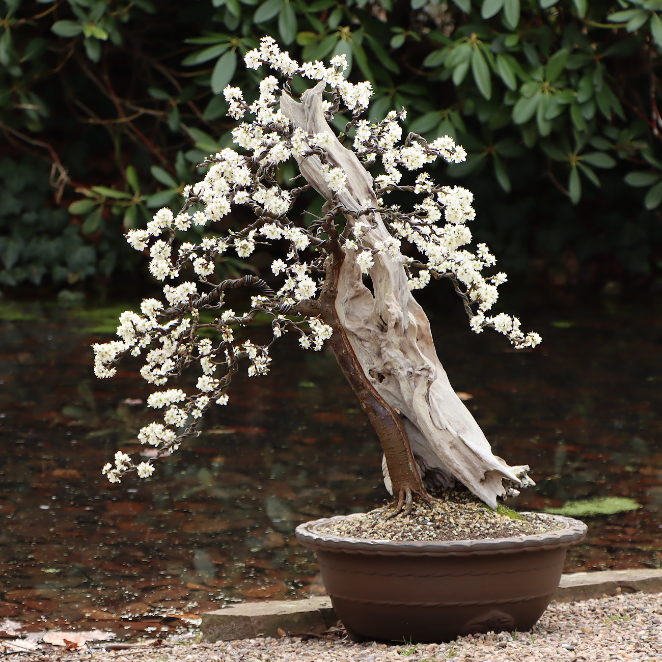 Schlehen entwickeln sich zu unglaublich schönen Bonsais. Alte Exemplare sind reich verzweigt und die tiefschwarze Rinde ist ein toller Kontrast zu den weißen Blüten im Frühjahr. Auch die blauen Früchte in der grünen und später kahlen Krone sind sehr zierend. Darüber hinaus ist die Art sehr robust und anpassungsfähig. Ein heller Standort, eine gute Wasser- und Nährstoffversorgung sowie das regelmäßige Umtopfen sorgen für eine gesunde Entwicklung. Schlehen sind frosthart, aber wie alle Bonsai sind die frischen Wurzeln im Frühjahr spätfrostempfindlich.