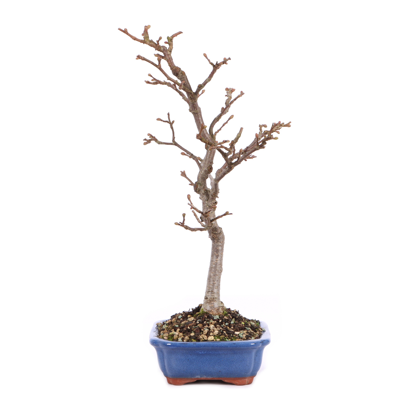 Die Hasel bildet durch einen regelmäßigen Rückschnitt eine sehr gute Verzweigung aus. Fast von alleine entsteht so ein Bonsai mit einer schönen und natürlichen Krone. Die jungen Äste sind allerdings auch recht biegsam und mit Draht sehr gut zu Formen. Die Drahtung sollte jedoch rechtzeitig entfernt werden, um eine Narbenbildung auf der sonst glatten Rinde zu vermeiden. Die Hasel ist robust, sehr wüchsig und hat auch einen sehr guten Stockausschlag. Daher verträgt sie zur richtigen Zeit auch einen radikalen Rückschnitt und kann sehr gut verjüngt werden. Sie bietet insgesamt viele Möglichkeiten für die Gestaltung. Typisch ist natürlich eine Entwicklung zum Mehrfachstamm, aber sie bildet auch einen guten Wurzelansatz für eine frei aufrechte Form. Die Hasel bevorzugt einen feuchten, gut nährstoffversorgten Boden und einen sonnigen, aber geschützten Standort. In einem Alter von ca. 6 Jahren fühlt sich die Pflanze auch als Bonsai erwachsen und bildet an den Jahrestrieben männliche und weibliche Blüten. Die männlichen Blüten hängen dekorativ als Kätzchen an der Pflanze und mit etwas Glück entwickeln sich an den weiblichen Blüten die charakteristischen Haselnüsse.