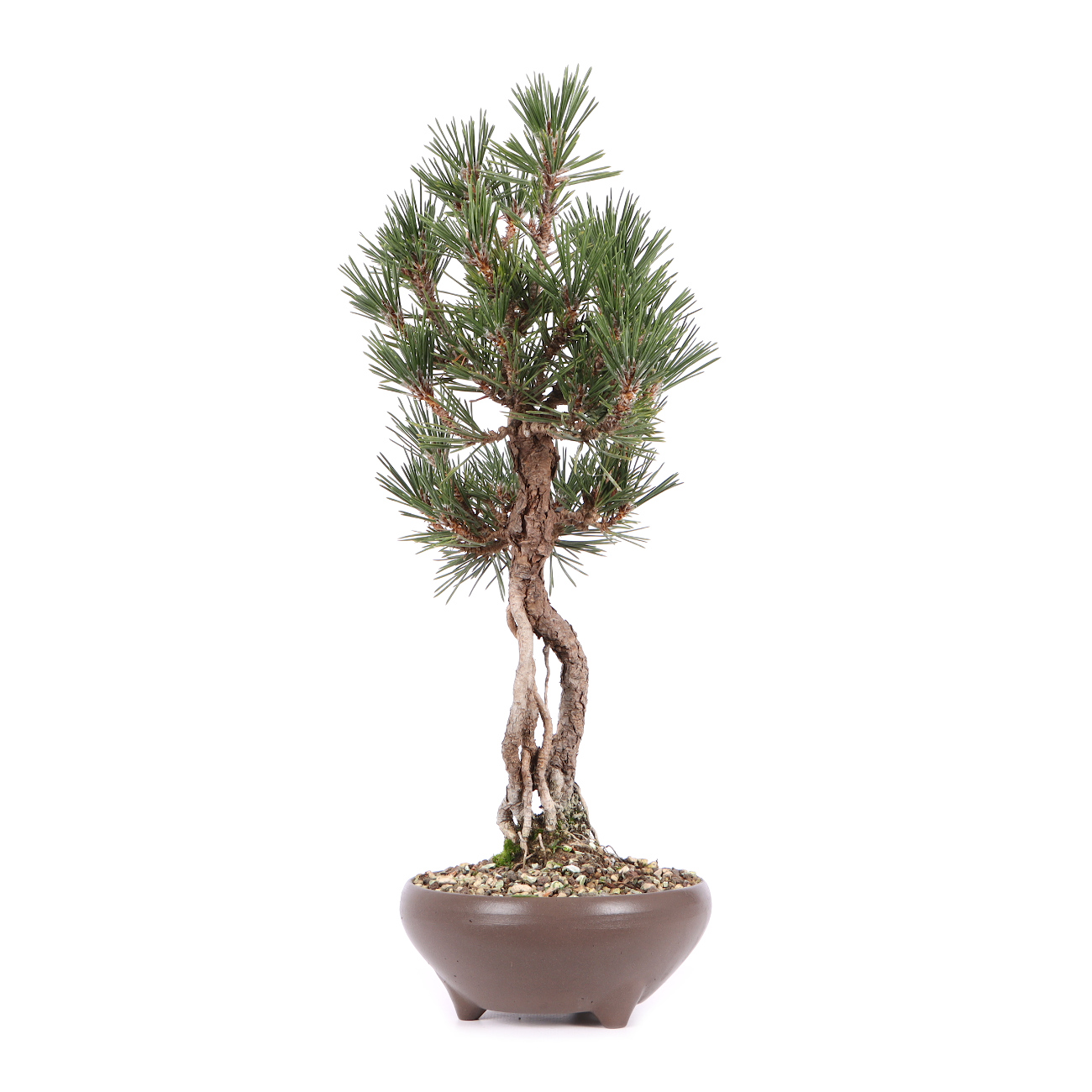 In Japan ist die Schwarz-Kiefer eine der häufigsten Bonsai-Arten. Obwohl die Pflanze bei uns keinerlei klimatisch bedingte Probleme hat, ist es nicht einfach, aus einer Jungpflanze einen guten Bonsai zu gestalten. Würde man die Kiefer in den Garten pflanzen, wächst sie ähnlich stark wie die Österreichische Schwarz-Kiefer (Pinus nigra), nur schlanker und mit etwas kürzeren Nadeln. Im Topf oder in der Schale wird das Wachstum zwar etwas gebremst, aber trotzdem bedarf es schon einiger Arbeit und Kenntnis, den Wuchs kompakt und fein verzweigt mit kurzen Nadeln zu erhalten. Unsere bisherige Erfahrung liegt darin, dass man die neuen Jahrestriebe erst nach der vollständigen Entwicklung im Juli/August stark einkürzt. Dadurch bildet die Kiefer noch im gleichen Jahr viele kleine neue Knospen. Spätestens im nächsten Jahr bilden sich aus diesen kleinen Knospen neue, aber kleinere Triebe, mit kürzeren Nadeln. Wurzelschnitt und umtopfen werden im September durchgeführt. Bei dem Substrat verwendet man eine strukturstabile, luftige Mischung und achtet auf das Vorhandensein von Mykorrhiza-Pilzen. Man erkennt den Pilz an einem gleichmäßigen, feinen und weißen Belag, der die Wurzeln umhüllt und im Optimalfall die ganze Erde durchzieht. Drahten und gestalten, kann man von Oktober bis April. Danach sollte die Pflanze am besten frostfrei stehen. Im Sommer ist ein sonniger Standort sehr von Vorteil.