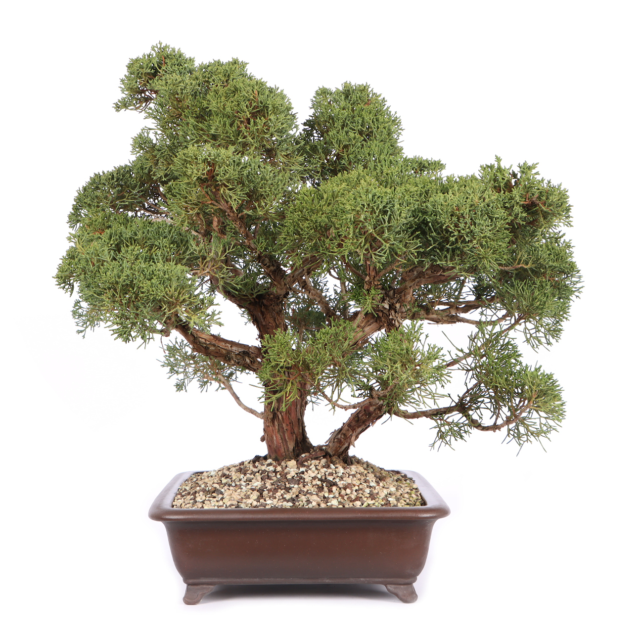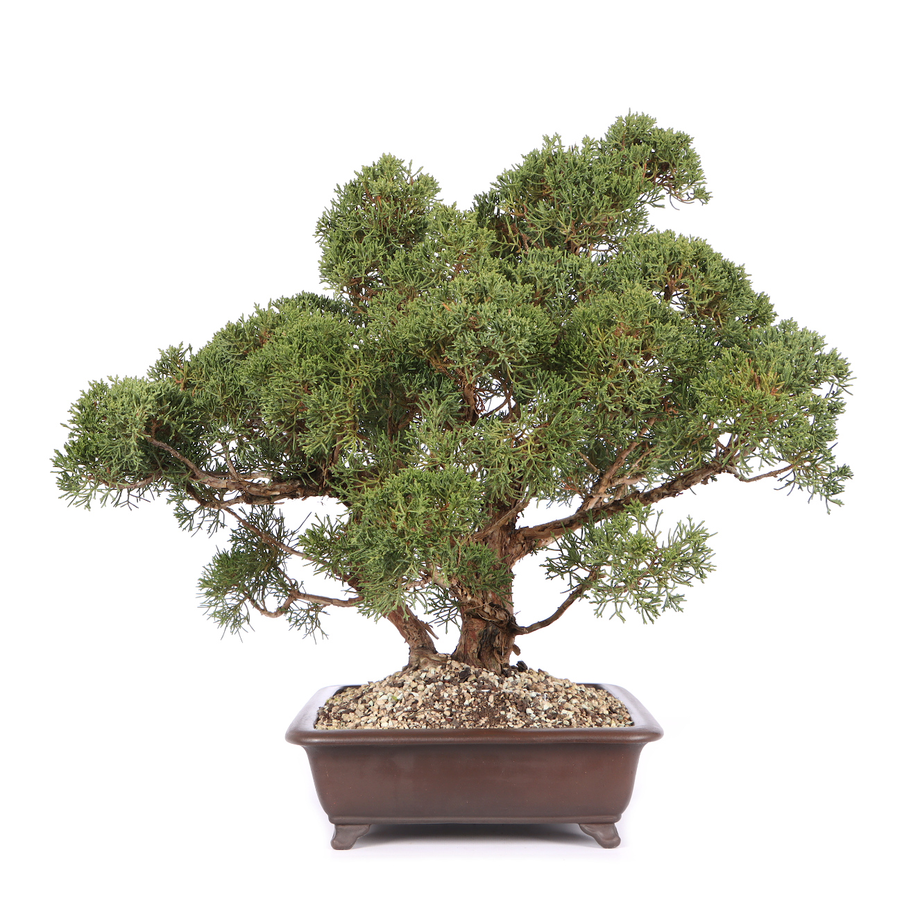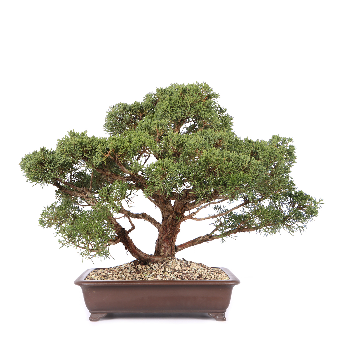 Der Chinesische Wacholder ist neben der Mädchenkiefer das bekannteste und beliebteste Nadelgehölz für die Bonsaigestaltung. Das feine immergrüne Laub, die Biegsamkeit des Holzes und die allgemeine Robustheit, machen die Pflanzen zu einem optimalen Ausgangsmaterial für die Bonsaigestaltung. In Japan findet man außerdem uralte und bizarr gewachsene Wacholder in der Natur. Durch die genannten Eigenschaften bieten sich fast unbegrenzte Möglichkeiten, das Grün der Pflanze neu anzuordnen und interessante Totholzpartien zu gestalten. Der Wacholder verzeiht hier auch massive Eingriffe, solange man ihm immer wieder Zeit zur Regeneration gibt. Ein sonniger Platz im Freien ist im Sommer für eine gesunde Entwicklung sehr wichtig. Bei einem schattigen Standort leidet die Ausfärbung der Nadeln, und die Triebe werden lang und unansehnlich. Auch im Winter ist ein sehr heller aber geschützter Platz unerlässlich. Die rötlich-braune Verfärbung der Nadeln im Winter ist normal. Im Frühjahr, wenn es wärmer wird, werden die Nadeln wieder grün. Auch wenn in den Sommermonaten reichliches Gießen erforderlich ist, muss Staunässe unbedingt vermieden werden. Kurzfristige Trockenheit verträgt der Chinesische Wacholder ohne Schaden. Die Gestaltung mit Formschnitt und Drahten wird in der Wachstumsruhe von November bis März vorgenommen. Umgetopft wird von August bis September in gut luft- und wasserdurchlässige Erde. An tierischen Schädlingen sind bei uns an Wacholdern nur Blattläuse und Spinnmilben aufgetreten. Mit handelsüblichen Pflanzenschutzmitteln sind diese aber schnell zu beseitigen. Ein optimaler Standort, aufmerksame Pflege und eine ausreichende Ernährung sind in der Regel die besten vorbeugenden Pflanzenschutzmaßnahmen.