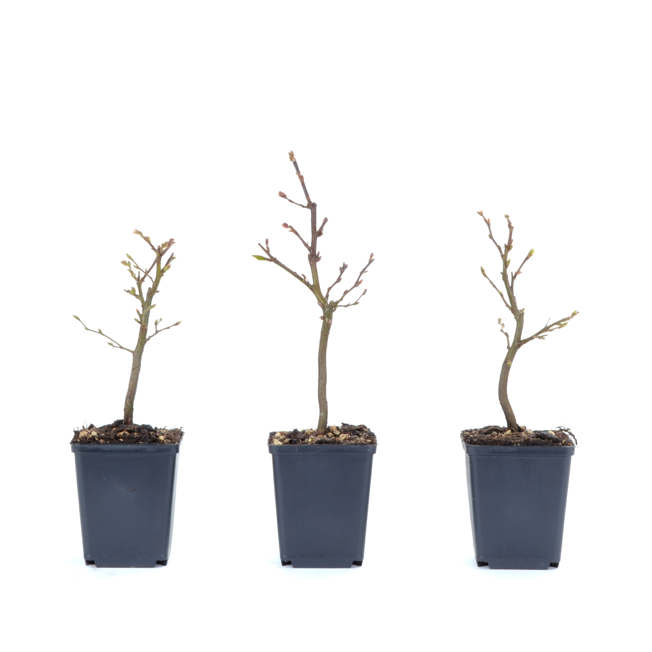 Von den heimischen Bäumen ist die Hainbuche (oder auch Weißbuche genannt) sicherlich am einfachsten zu gestalten. Durch ihre gute Schnittverträglichkeit und ihre Wuchsfreudigkeit hat man in kürzester Zeit ansehnliche kleine Bäume. Ihre glatte Rinde und die am Stamm auftretenden unregelmäßigen Wülste sehen bei frei aufrechten Formen am interessantesten aus. Die Hainbuche treibt den ganzen Sommer kräftig durch, so dass ein ständiges zurückschneiden notwendig ist. Bei extremer Hitze empfiehlt es sich die Pflanze etwas schattiger zu stellen, um Blattverbrennungen zu vermeiden. Wer ein schnelles Dickenwachstum der Äste und des Stammes fördern will, pflanzt die Hainbuche in das Freiland oder in einen überdimensionierten Topf und schneidet während des ganzen Sommers nicht. Erst im Frühjahr wird die Hainbuche dann stark zurückgenommen. Es ist sogar möglich, alle Äste bis auf den Stamm zurückzuschneiden. Im folgenden Sommer werden die frischen Triebe wiederum nicht geschnitten. Erst im Winter oder Frühjahr wird der Baum neu aufgebaut und in eine Schale getopft. Der Zeitpunkt des Umtopfens sollte nicht zu spät gelegt werden, da nach unseren Erfahrungen Hainbuchen, die im Austrieb umgetopft wurden, starke Probleme beim Anwachsen hatten. Während der folgenden Wachstumsperiode werden die frischen Triebe rechtzeitig eingekürzt, um eine feine Verzweigung zu erreichen. An den Standort stellt die Hainbuche keine großen Ansprüche, nur in extrem warmen Sommermonaten ist eine Beschattung während der Mittagszeit sinnvoll. Im Winter sollte die Pflanze nicht austrocknen. Ideal ist eine geschützte Überwinterung in einem nicht beheizten Glas- oder Folienhaus. Bei Spätfrösten muss die Pflanze ebenfalls geschützt werden.