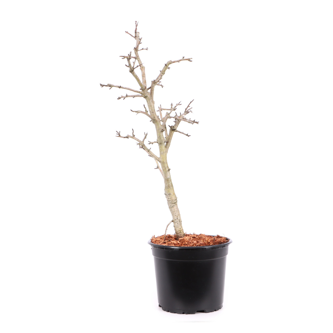 Die Sorte ‘Paul’s Scarlet‘ ist eigentlich ein Hybrid aus den heimischen Arten Crataegus monogyna und Crataegus laevigata. Es handelt sich bei den Pflanzen also meistens um Veredelungen. An jungen Pflanzen wachsen unterhalb der Veredelungsstelle manchmal noch die Äste der Unterlage. Diese müssen entsprechend entfernt werden. Der entscheidende Unterschied zu den Arten ist natürlich die Blüte des Rotdorns. Diese ist nämlich leuchtend, karmesinrot und gefüllt, also mit vielen Blütenblättern. Dies ist an einem Bonsai natürlich sehr dekorativ.