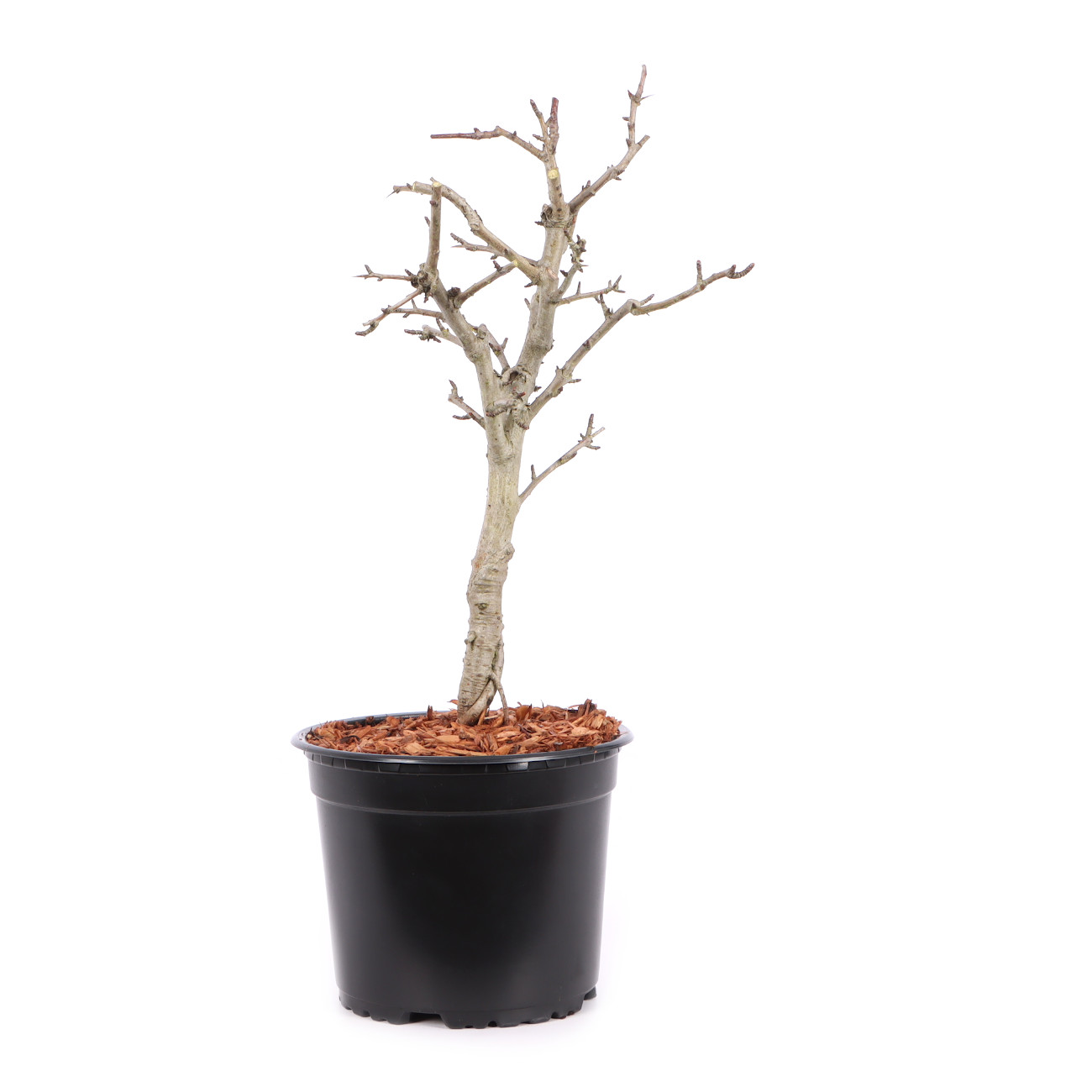 Die Sorte ‘Paul’s Scarlet‘ ist eigentlich ein Hybrid aus den heimischen Arten Crataegus monogyna und Crataegus laevigata. Es handelt sich bei den Pflanzen also meistens um Veredelungen. An jungen Pflanzen wachsen unterhalb der Veredelungsstelle manchmal noch die Äste der Unterlage. Diese müssen entsprechend entfernt werden. Der entscheidende Unterschied zu den Arten ist natürlich die Blüte des Rotdorns. Diese ist nämlich leuchtend, karmesinrot und gefüllt, also mit vielen Blütenblättern. Dies ist an einem Bonsai natürlich sehr dekorativ.