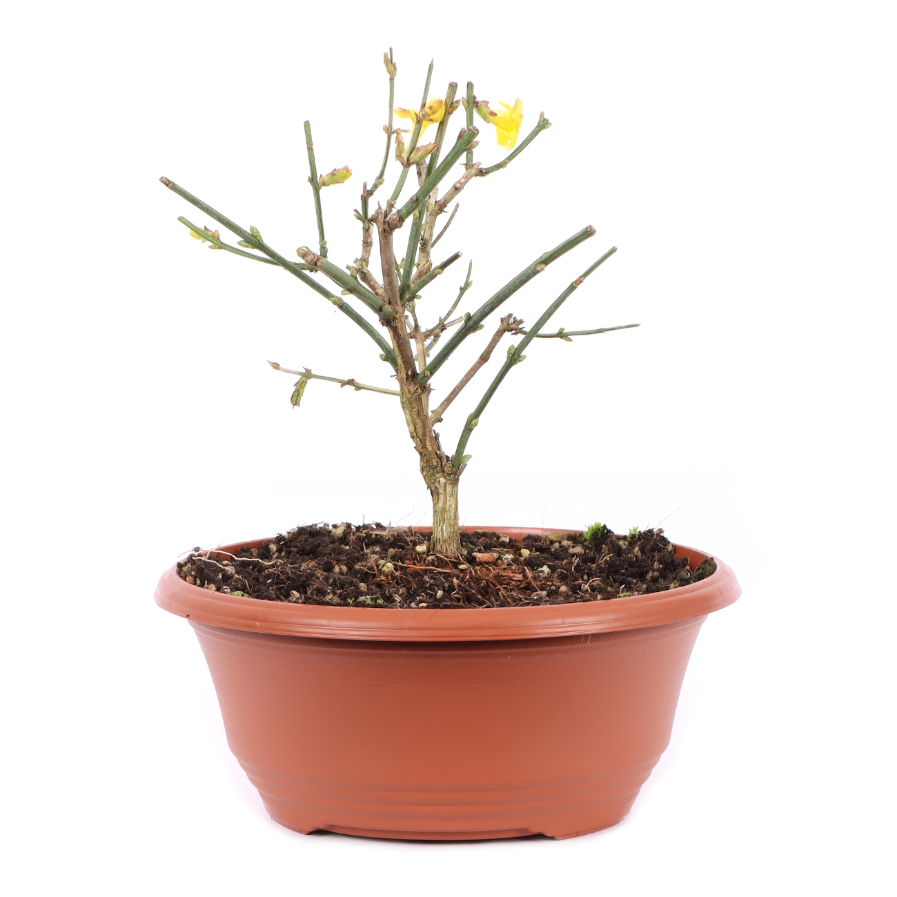 Durch einen Winterjasmin beginnt das Bonsai-Jahr manchmal schon im Januar. Bei milden Temperaturen zeigen sich dann nämlich die ersten Frühjahrsblüten. Zusammen mit dem hellen Stamm und den grünen Ästen entsteht ein sehr schöner Anblick. Die Pflanze entwickelt dann im Frühjahr lange Triebe, die stark zurückgeschnitten werden müssen. Ein Drahten der Äste ist auch möglich. Im Sommer kann der Winterjasmin vollsonnig stehen. Im Winter ist ein geschützter Standort zu empfehlen.