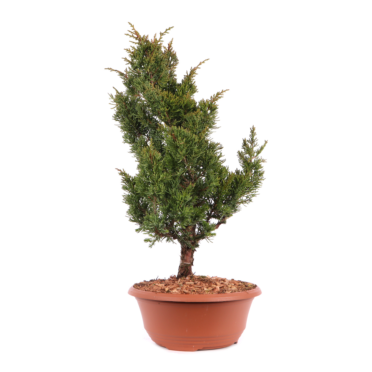 Der Chinesische Wacholder ist neben der Mädchenkiefer das bekannteste und beliebteste Nadelgehölz für die Bonsaigestaltung. Das feine immergrüne Laub, die Biegsamkeit des Holzes und die allgemeine Robustheit, machen die Pflanzen zu einem optimalen Ausgangsmaterial für die Bonsaigestaltung. In Japan findet man außerdem uralte und bizarr gewachsene Wacholder in der Natur. Durch die genannten Eigenschaften bieten sich fast unbegrenzte Möglichkeiten, das Grün der Pflanze neu anzuordnen und interessante Totholzpartien zu gestalten. Der Wacholder verzeiht hier auch massive Eingriffe, solange man ihm immer wieder Zeit zur Regeneration gibt. Ein sonniger Platz im Freien ist im Sommer für eine gesunde Entwicklung sehr wichtig. Bei einem schattigen Standort leidet die Ausfärbung der Nadeln, und die Triebe werden lang und unansehnlich. Auch im Winter ist ein sehr heller aber geschützter Platz unerlässlich. Die rötlich-braune Verfärbung der Nadeln im Winter ist normal. Im Frühjahr, wenn es wärmer wird, werden die Nadeln wieder grün. Auch wenn in den Sommermonaten reichliches Gießen erforderlich ist, muss Staunässe unbedingt vermieden werden. Kurzfristige Trockenheit verträgt der Chinesische Wacholder ohne Schaden. Die Gestaltung mit Formschnitt und Drahten wird in der Wachstumsruhe von November bis März vorgenommen. Umgetopft wird von August bis September in gut luft- und wasserdurchlässige Erde. An tierischen Schädlingen sind bei uns an Wacholdern nur Blattläuse und Spinnmilben aufgetreten. Mit handelsüblichen Pflanzenschutzmitteln sind diese aber schnell zu beseitigen. Ein optimaler Standort, aufmerksame Pflege und eine ausreichende Ernährung sind in der Regel die besten vorbeugenden Pflanzenschutzmaßnahmen.