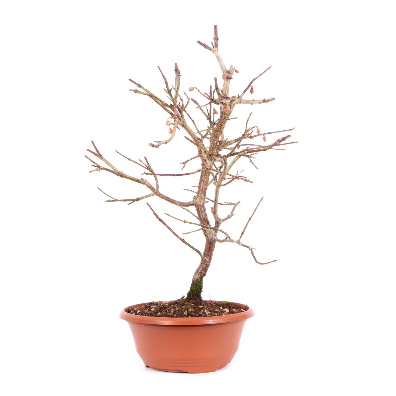 Die herrliche Blüte und die knallroten Früchte der Kornelkirsche zählen sicher zu den Hauptgründen, warum sie in keiner Bonsaisammlung fehlen sollte. Als Strauch blüht und fruchtet sie auch schon mit einem Alter von nur 3-5 Jahren. Daneben schafft ihre Schnittverträglichkeit und Wuchsfreudigkeit weitere gute Voraussetzung für eine erfolgreiche Bonsaigestaltung. Die Erde sollte im Sommer nicht zu trocken gehalten werden. Staunässe muss jedoch auch vermieden werden. Die Kornelkirsche liebt einen hellen, aber vor starker Sommersonne geschützten Standort. Obwohl unseren Jungpflanzen Temperaturen bis -15° C im Folienhaus noch nicht geschadet haben, sollten ältere Exemplare aber in jedem Fall vor Spätfrösten im Frühjahr geschützt werden.