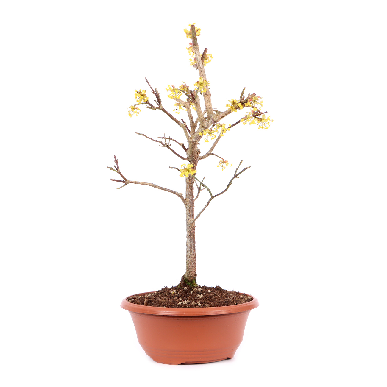 Die herrliche Blüte und die knallroten Früchte der Kornelkirsche zählen sicher zu den Hauptgründen, warum sie in keiner Bonsaisammlung fehlen sollte. Als Strauch blüht und fruchtet sie auch schon mit einem Alter von nur 3-5 Jahren. Daneben schafft ihre Schnittverträglichkeit und Wuchsfreudigkeit weitere gute Voraussetzung für eine erfolgreiche Bonsaigestaltung. Die Erde sollte im Sommer nicht zu trocken gehalten werden. Staunässe muss jedoch auch vermieden werden. Die Kornelkirsche liebt einen hellen, aber vor starker Sommersonne geschützten Standort. Obwohl unseren Jungpflanzen Temperaturen bis -15° C im Folienhaus noch nicht geschadet haben, sollten ältere Exemplare aber in jedem Fall vor Spätfrösten im Frühjahr geschützt werden.