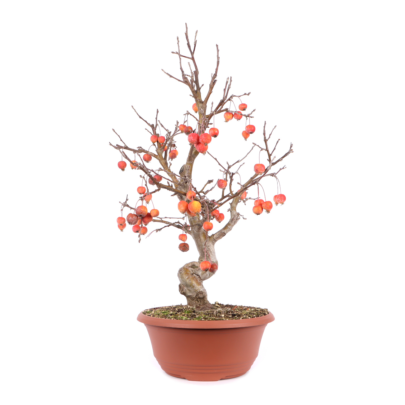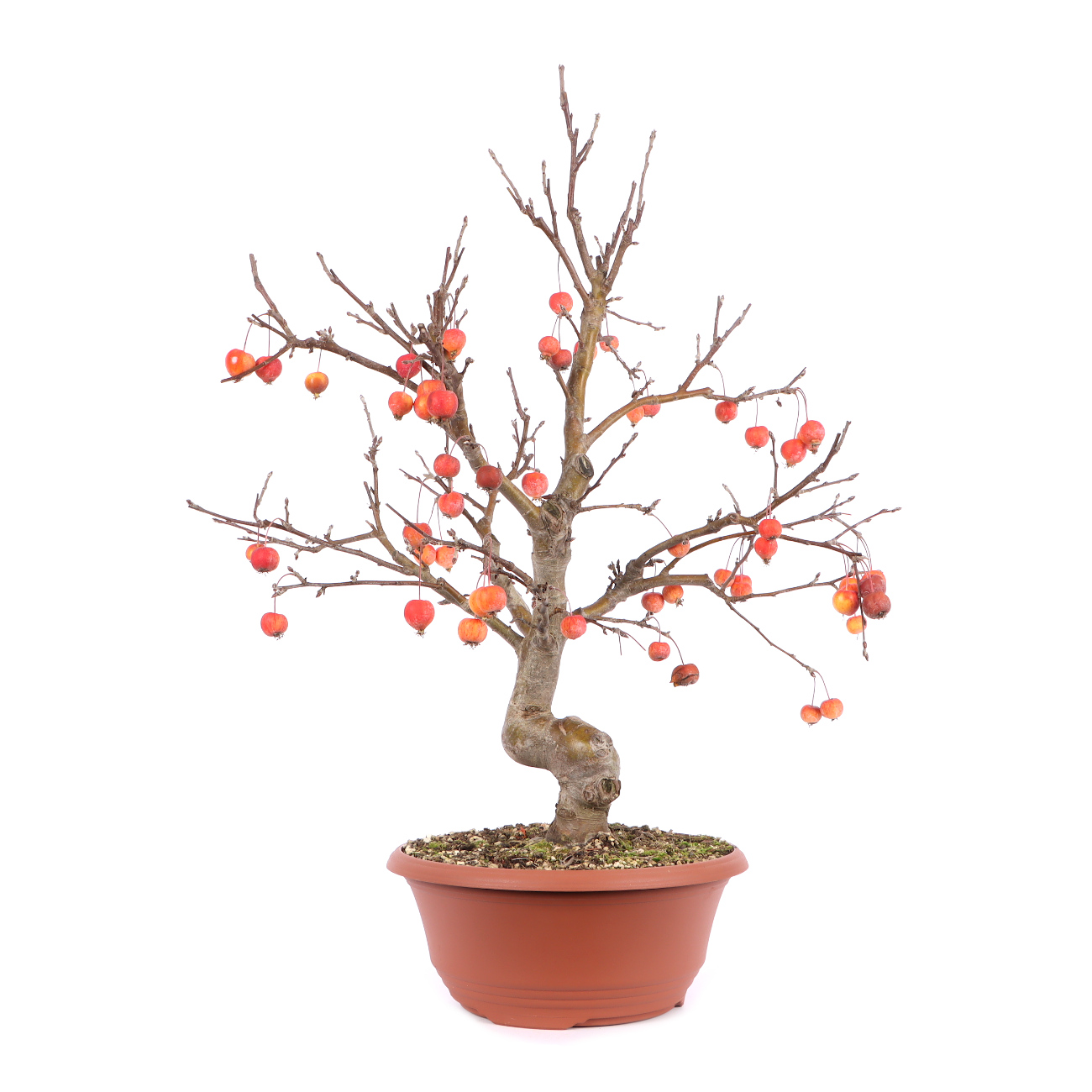Durch die intensive Blüte im Mai/Juni und die kleinen Zieräpfel sind diese Pflanzen auch als Bonsai sehr beliebt. Zier-Äpfel sind robust, anspruchslos und in der Pflege insgesamt unkompliziert. Durch einen regelmäßigen Rückschnitt des Neuaustriebes entwickeln sich fast von selbst ansehnliche Bäume. Im Sommer lieben alle Zier-Äpfel einen sonnigen Platz im Freien. Lediglich bei Hitzeperioden ist ein Schutz sinnvoll. Man muss während der Hauptwachstumszeit an eine ausreichende Bewässerung und Düngung denken. Es ist nichts Besonderes, wenn an heißen Sommertagen morgens und abends gewässert werden muss. Die Erde sollte in der Lage sein, tagsüber so viel Wasser zu liefern, wie die Pflanze durch ihre Blätter verdunstet. Im Winter ist der Wasserverbrauch erheblich geringer, ein geschützter Platz ist dann ausreichend. Leichter Frost schadet nicht, im Gegenteil. Die Minus-Temperatur fördert eine gute Blüten- und Fruchtbildung für das nächste Jahr. Ein guter Zeitpunkt für das Umtopfen, den Wurzel- und Formschnitt ist das Frühjahr, bevor der Zierapfel austreibt.