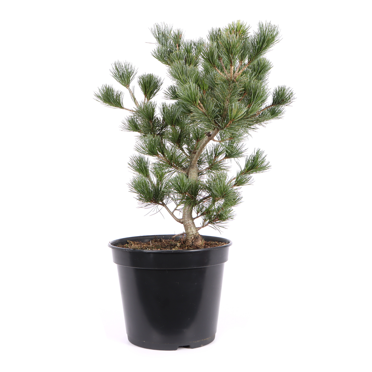 Die Mädchenkiefer hat in Japan aufgrund ihrer Symbolik (Männlichkeit, Stärke, langes Leben) einen sehr hohen Stellenwert und ist vielleicht der beliebteste Bonsai überhaupt. Sie ist robust und bietet viele gestalterische Möglichkeiten. Als Bonsai strahlen sie durch ihren derben Charakter viel Kraft aus. Andererseits zeigt die gestaltete Kiefer im Vergleich zu Laubbäumen wenig Veränderung und vermittelt dem Betrachter dadurch im Jahresverlauf viel Ruhe. Eine gestaltete Kiefer ist im Grunde sehr pflegeleicht. Die neuen Triebe (Kerzen) werden im Mai eingekürzt bzw. mit den Fingern gebrochen und zu dichte Astpartien werden im Spätsommer ausgelichtet. Im Sommer ist ein sonniger Standort sehr von Vorteil. Kiefern sollten nicht zu nass gehalten werden. Bei langen Regenperioden empfiehlt es sich die Pflanze sogar unter ein Dach zu stellen. Drahten und Gestalten kann man das ganze Jahr über. Dies sollte aber nicht mit dem Umtopfen Anfang September zusammen fallen. Außerdem muss die Pflanze nach der Gestaltung am besten frostfrei stehen. Bei dem Substrat verwendet man eine strukturstabile, luftige Mischung und achtet auf das Vorhandensein von Mykorrhiza-Pilzen. Man erkennt den Pilz an einem gleichmäßigen, feinen und weißen Belag, der die Wurzeln umhüllt und im Optimalfall die ganze Erde durchzieht. Kiefern sind sehr frosthart. Trotzdem sollten sie im Winter vor trockenen Winden geschützt werden. Bonsai-Sämlinge von der Mädchenkiefer haben sich in Mitteleuropa nicht bewährt bzw. gehen nach gewisser Zeit meistens ein. Wir bieten ausschließlich Veredelungen an, da die Wurzeln der Unterlage (z.B. Pinus thunbergii) besser an unser Klima angepasst sind.