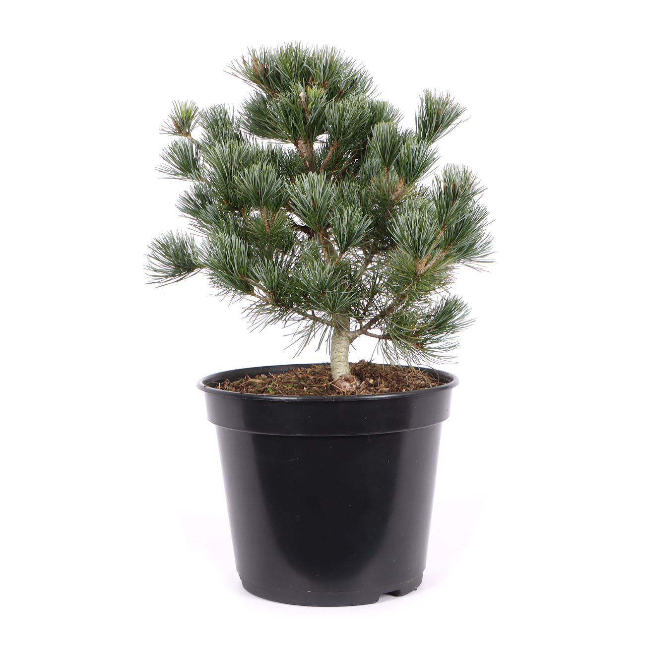 Die Mädchenkiefer hat in Japan aufgrund ihrer Symbolik (Männlichkeit, Stärke, langes Leben) einen sehr hohen Stellenwert und ist vielleicht der beliebteste Bonsai überhaupt. Sie ist robust und bietet viele gestalterische Möglichkeiten. Als Bonsai strahlen sie durch ihren derben Charakter viel Kraft aus. Andererseits zeigt die gestaltete Kiefer im Vergleich zu Laubbäumen wenig Veränderung und vermittelt dem Betrachter dadurch im Jahresverlauf viel Ruhe. Eine gestaltete Kiefer ist im Grunde sehr pflegeleicht. Die neuen Triebe (Kerzen) werden im Mai eingekürzt bzw. mit den Fingern gebrochen und zu dichte Astpartien werden im Spätsommer ausgelichtet. Im Sommer ist ein sonniger Standort sehr von Vorteil. Kiefern sollten nicht zu nass gehalten werden. Bei langen Regenperioden empfiehlt es sich die Pflanze sogar unter ein Dach zu stellen. Drahten und Gestalten kann man das ganze Jahr über. Dies sollte aber nicht mit dem Umtopfen Anfang September zusammen fallen. Außerdem muss die Pflanze nach der Gestaltung am besten frostfrei stehen. Bei dem Substrat verwendet man eine strukturstabile, luftige Mischung und achtet auf das Vorhandensein von Mykorrhiza-Pilzen. Man erkennt den Pilz an einem gleichmäßigen, feinen und weißen Belag, der die Wurzeln umhüllt und im Optimalfall die ganze Erde durchzieht. Kiefern sind sehr frosthart. Trotzdem sollten sie im Winter vor trockenen Winden geschützt werden. Bonsai-Sämlinge von der Mädchenkiefer haben sich in Mitteleuropa nicht bewährt bzw. gehen nach gewisser Zeit meistens ein. Wir bieten ausschließlich Veredelungen an, da die Wurzeln der Unterlage (z.B. Pinus thunbergii) besser an unser Klima angepasst sind.