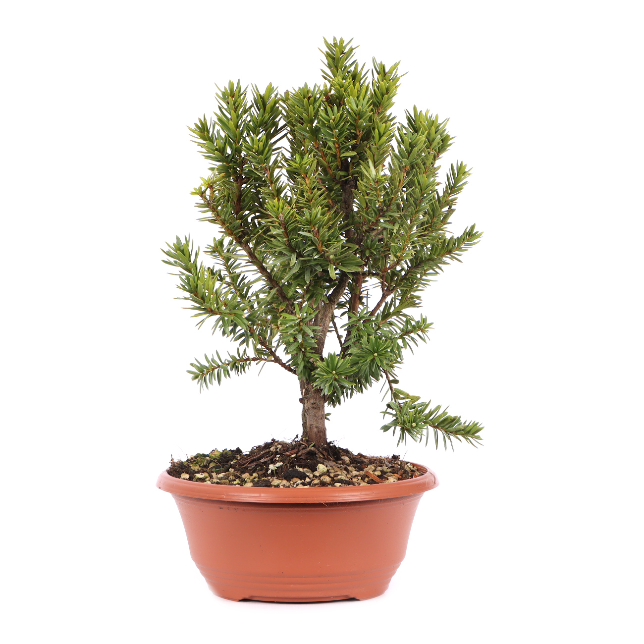 Durch ihre Robustheit, ihr starkes Ausschlagvermögen (auch aus dem alten Holz) und dem feinen Laub bietet die Eibe viele Möglichkeiten für die Bonsaigestaltung. Drahten sollte man jedoch rechtzeitig, wenn die Äste noch jung sind. Später werden sie nämlich sehr hart und unbiegsam. Eiben können sowohl im Schatten, als auch in der Sonne wachsen. Wichtig ist nur eine entsprechende Bewässerung, wobei Staunässe unbedingt zu vermeiden ist! Während der Wachstumsperiode werden die langen Triebe durch zupfen gekürzt. Wie bei fast allen Nadelgehölzen ist der Spätsommer/Herbst die beste Zeit für den Wurzelschnitt und das Umtopfen. Bei Fräsarbeiten am Holz sollte man aufgrund der Toxizität unbedingt eine Atemschutzmaske verwenden!