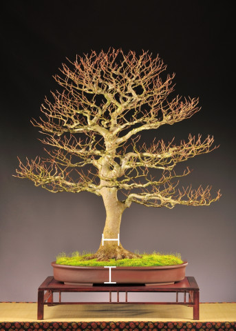 Die Schalenhöhe sollte ungefähr der Stammstärke entsprechen. Dies gilt allerdings nicht für Mehrfachstämme oder Kaskaden. Kräftige Wurzelballen (z.B. bei Kiefern oder Yamadori) erforden manchmal jedoch etwas tiefere Schalen.