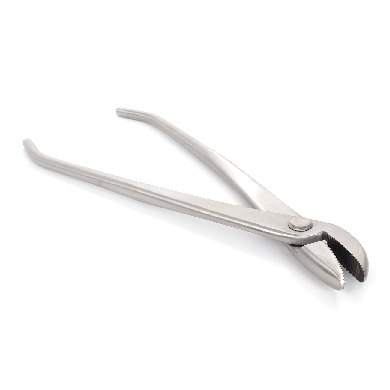 Die Jinzange hat im Vergleich zu der normalen Bonsaizange einen kleineren, spitzeren und gebogenen Kopf. Dadurch eignet sie sich viel besser für die Herstellung von Totholzpartien (Jin und Shari) an dem Bonsai. Die Zange liegt durch die zurückgebogenen Griffenden gut in der Hand und durch das schmale Design kann man auch bei einer dichten Verzweigung noch gut arbeiten. Natürlich kann man mit der Jinzange auch Drahtarbeiten erledigen, aber der Kopf ist etwas dünner und nicht ganz so robust, wie bei einer normalen Zange.