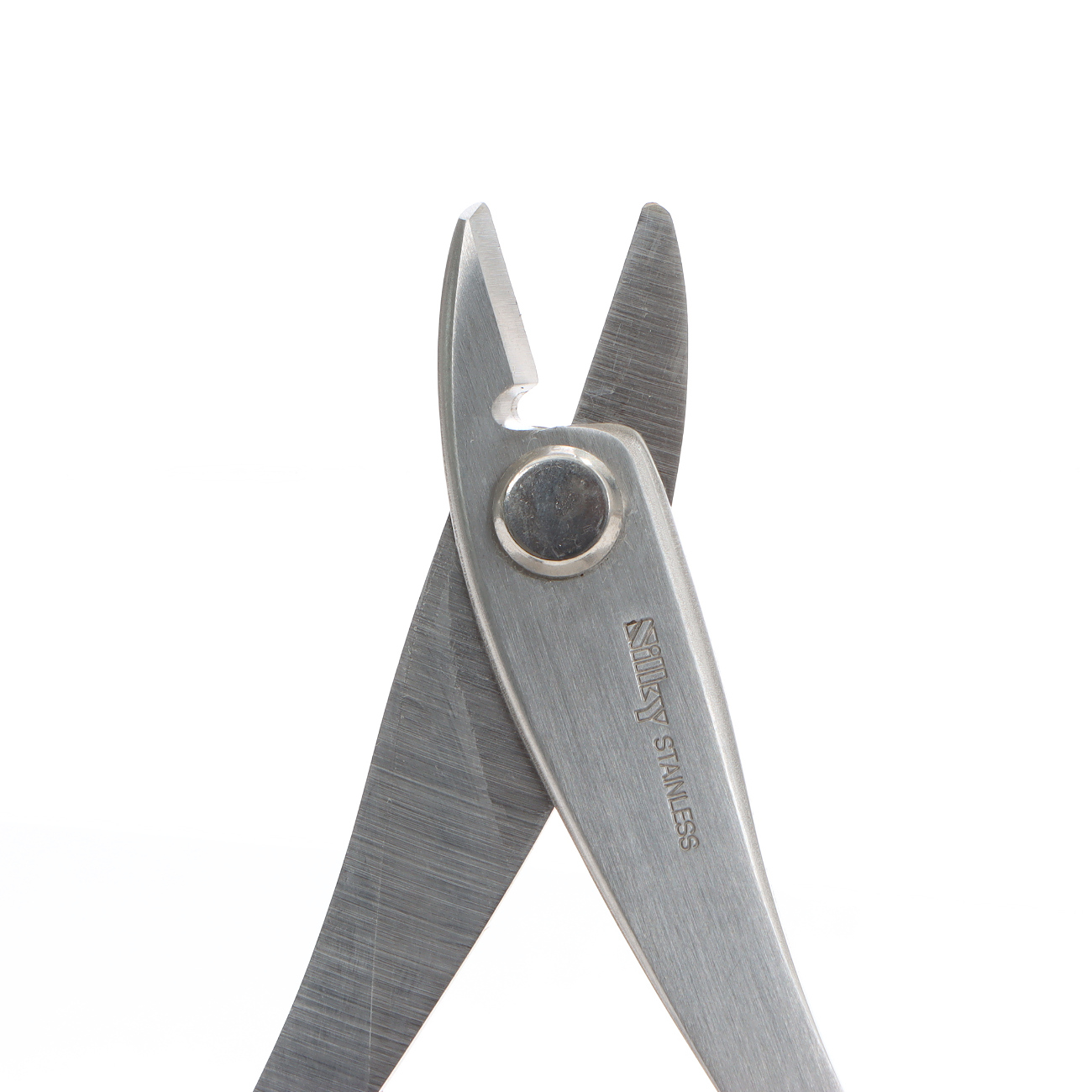Eigentlich ist die japanische Firma Silky in Europa überwiegend durch ihre hochwertigen Sägen bekannt. Darüber hinaus haben sie aber auch ein umfangreiches Sortiment an hochwertigen Scheren. Für die Arbeit mit Bonsai hat sich die kleine Drahtschere bewährt. Sie ist sehr leicht und schneidet Aluminiumdrähte bis 1,2 mm und Kupfer bis 0,7mm. Besonders bei der Feingestaltung von Wacholdern, wo oft Drähte geschnitten werden müssen, ist diese Schere sehr praktisch.