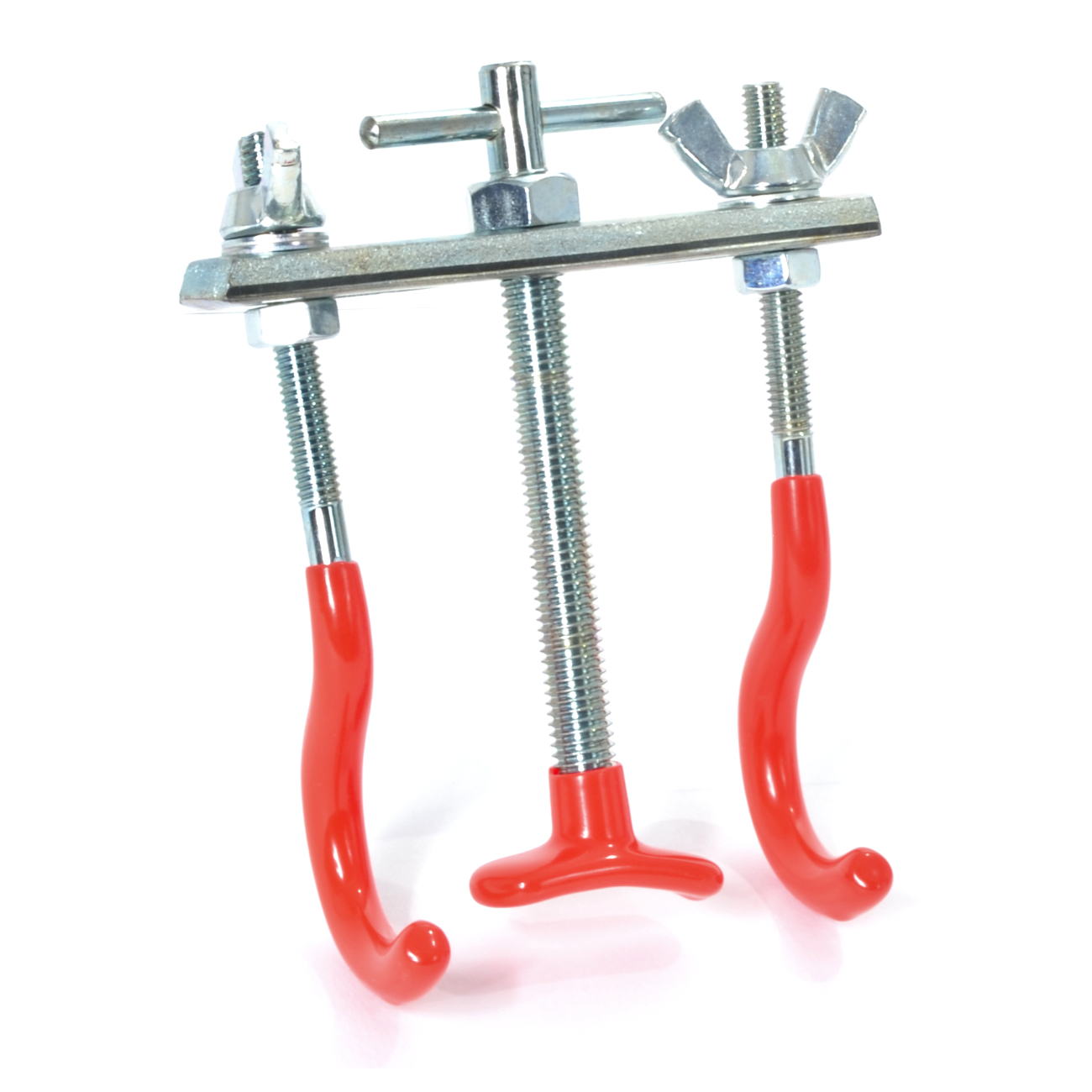 Die japanischen Schraubzwingen können für Korrekturen der Wuchsrichtung von Stamm und stärkeren Ästen eingesetzt werden. Oft ist es notwendig, eine Schraubzwinge mehrere Jahre am Stamm oder an den Ästen zu belassen. Ein Einwachsen ist in der Regel nicht möglich. An den Stellen, wo die Zwinge an den Pflanzenteilen anliegt, ist sie kunststoffummantelt. Der Rest besteht aus verzinktem Metall oder aus Messing. Bis auf die kleinste Schraubzwinge sind alle anderen Zwingen in der Breite verstellbar.