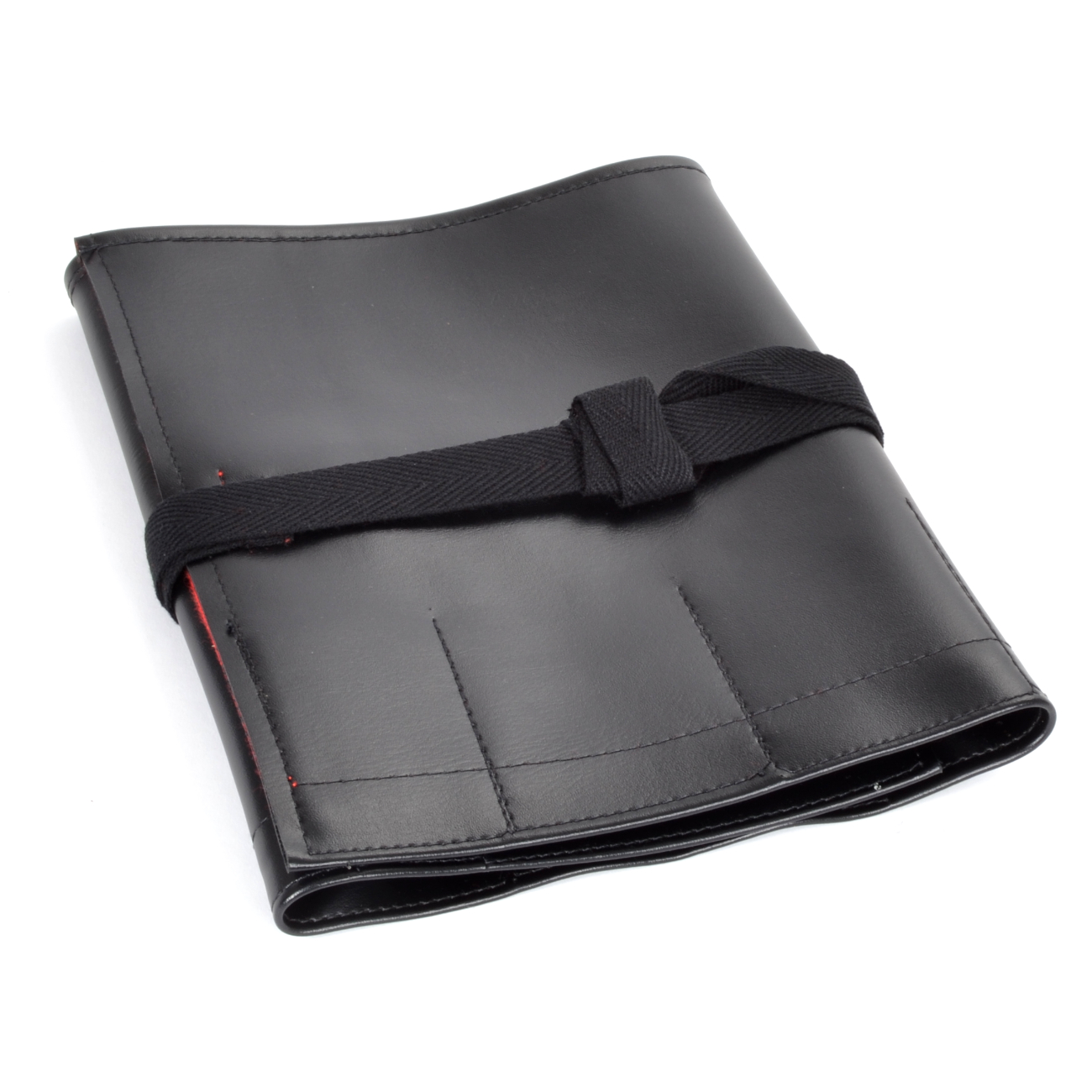 Die aus schwarzem Kunstleder hergestellte Werkzeugrolle aus Japan bietet Platz für mindestens zehn Bonsai-Werkzeuge. Innen ist das Leder mit rotem Stoff ausgekleidet und die Tasche lässt sich handlich zusammenrollen. So bleiben die Werkzeuge ordentlich beisammen und nichts geht verloren.