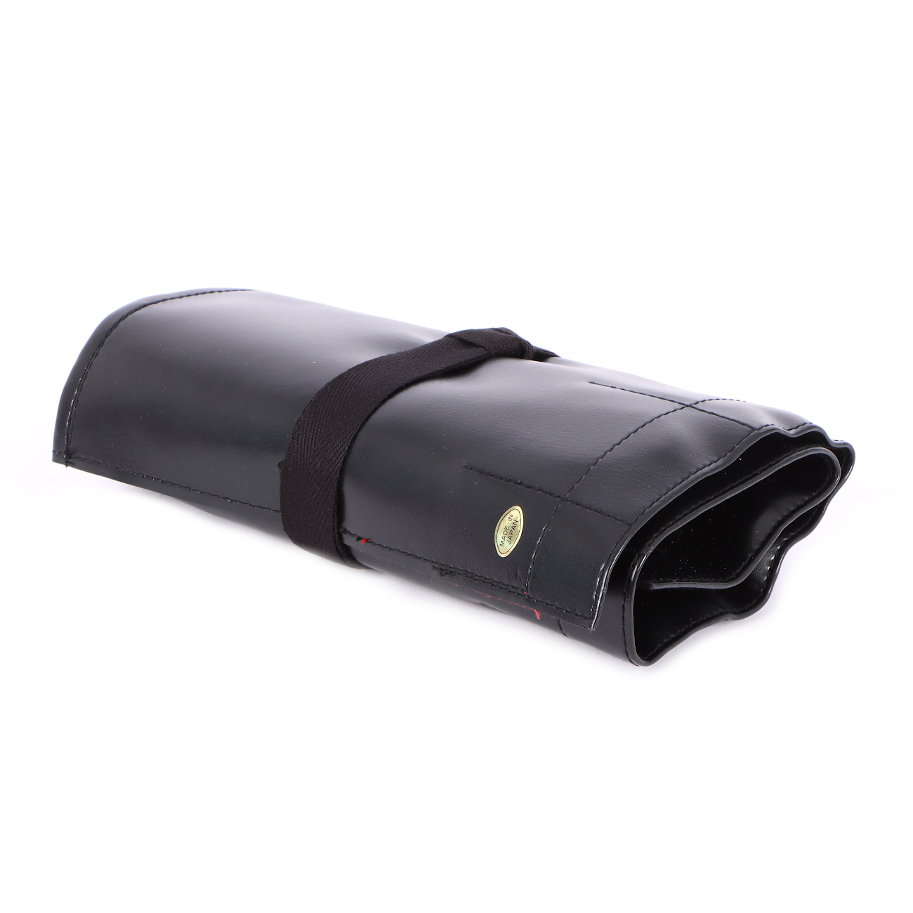 Die Kunstlederrolle enthält eine schmale Bonsaischere, eine Stutzschere, eine Konkavzange, eine Drahtzange, einen Drahtschneider, eine kleine Säge, eine Pinzette mit Spatel, eine Wurzelkralle, einen Schmutzradierer und einen kleinen Sisal-Besen.