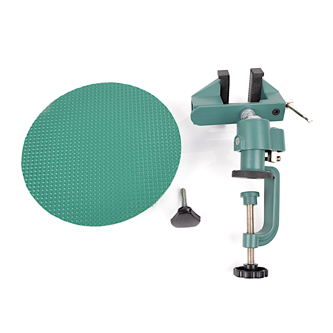 Dieser Drehtisch aus Japan ist sehr gut verarbeitet und universell einsetzbar. Das Unterteil lässt sich auf vielfältige Weise an Tischen und Streben (bis 5 cm) befestigen. Der Drehtisch wird mit einer Schraubzwinge eingespannt und ist durch ein solides Kugelgelenk vielseitig schwenkbar. Außerdem lässt sich der Drehwiederstand individuell einstellen, und durch Metallstifte an der Unterseite des Drehtellers können die Pflanzen auch in Extremstellungen sicher fixiert werden.