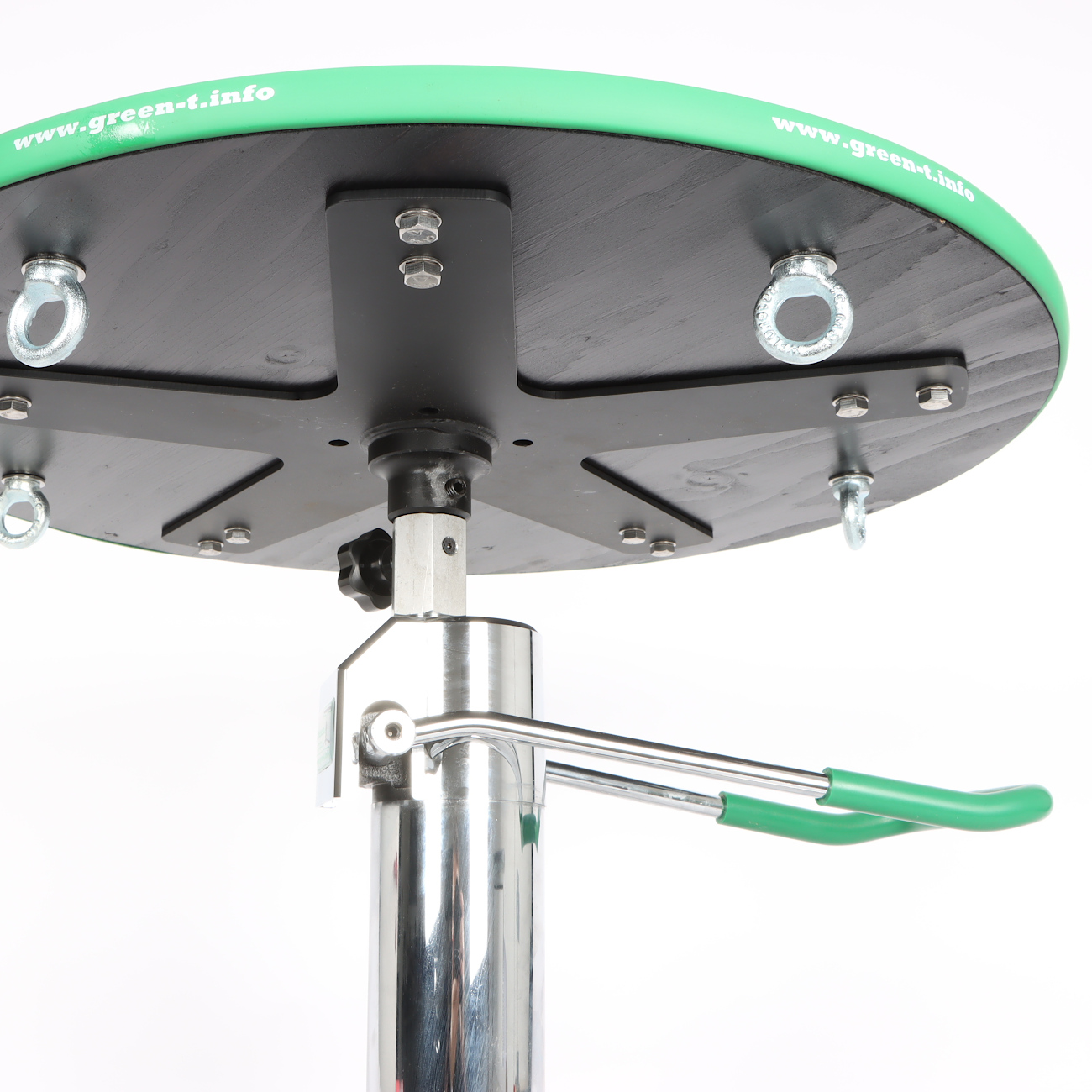 Dieser hochwertige Arbeitstisch wird in Europa hergestellt und ist nicht nur für Profis und Bonsai-Künstler eine lohnende Investition. Auch der Bonsai-Hobbyist wird schnell die Vorteile dieses Tisches schätzen und lieben lernen. Der Bonsai lässt sich auf dem Arbeitstisch nämlich optimal bearbeiten und gestalten. Dies ergibt sich einerseits aus dem freien Stand und der damit verbundenen guten Erreichbarkeit der gesamten Pflanze. Andererseits lässt sich die Arbeitshöhe durch den integrierten Hydraulikzylinder stufenlos und komfortable einstellen und ermöglicht dadurch ein effizientes und ermüdungsfreies Arbeiten an dem Bonsai. Die Tischplatte ist frei drehbar, feststellbar und mit einem rutschfesten Gummi überzogen. Auf der Unterseite verfügt sie über robuste Ösen, um den Bonsai in verschiedenen Positionen zu fixieren. Die Tischbeine haben höhenverstellbare Füße, um Unebenheiten auf dem Boden auszugleichen. Der Tisch hat eine Tragkraft von 200 kg und ist aus hochwertigen und garantiert wetterbeständigen Materialien gefertigt. Der Arbeitstisch ist sowohl für große und schwere Bäume, als auch für kleine Bonsai geeignet. Bei kleinen Bonsai lässt sich der zusätzliche Platz auf der Tischplatte sehr gut für die Ablage von Werkzeug nutzen.