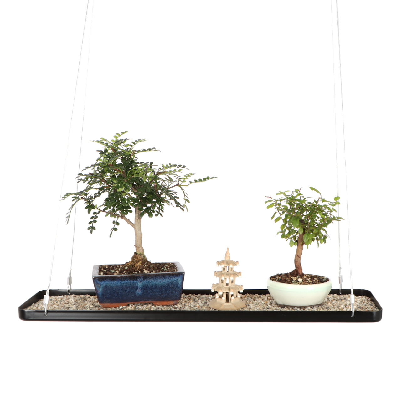 Das hängende Metalltablett ist ein echter Hingucker für Ihr Fenster. Mit Kies befüllt bietet das wasserdichte Tablett Platz für Bonsai oder Deko. In verschiedenen Farben und zwei Längen kann es über zwei Befestigungspunkte überall einfach angebracht werden.