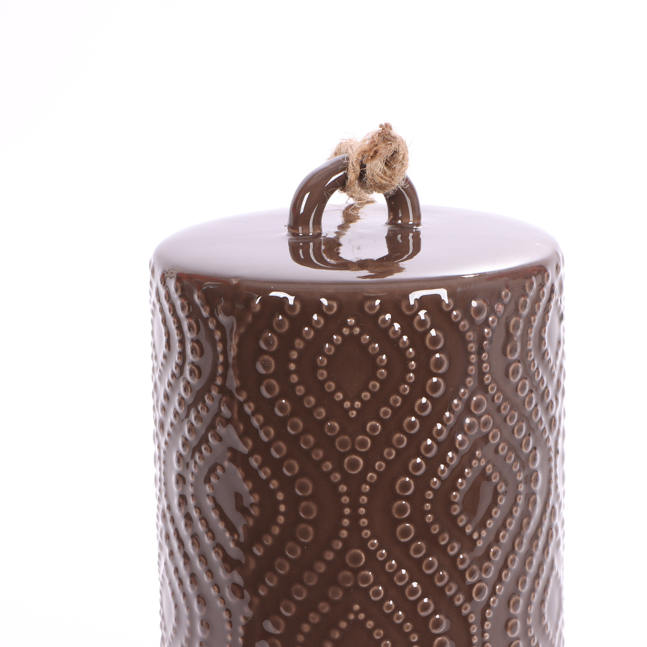 Der Holzklöppel, der von innen mit einem Sisalband befestigt ist, erzeugt bei einem leichten Schlag gegen den schlanken Klangkörper aus glasierter Keramik einen hellen Gong. Die Kombination aus Holz und Keramik sorgen einen besonderen Klang.