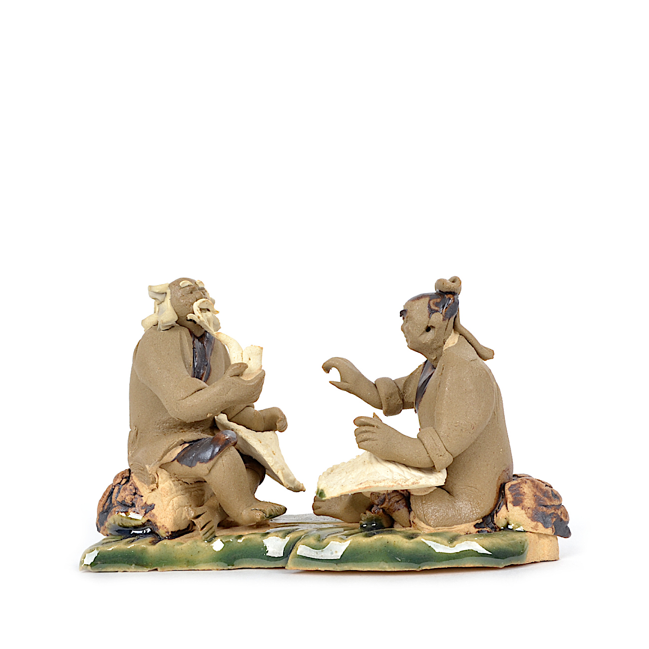 Diese Figuren wurden in China in feiner Handarbeit aus Ton hergestellt. Es sind kleine individuelle Kunstwerke, die immer etwas anders ausfallen. Als Dekoration für Bonsai, Bonsaiwälder und Landschaften eignen sie sich ebenso gut wie als Dekoration in Regalen oder auf Fensterbänken.