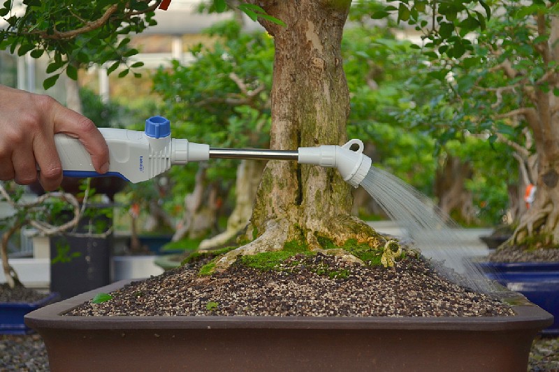 Die konisch geformten Brausenlöcher von nur 0,3 mm Durchmesser ermöglichen sehr feines Gießen und verhindern eine Substrataufschwämmung. Durch den Brausenhals kann man problemlos um den gesamten Bonsai herum gießen und vermeidet dadurch einen Gießschatten.